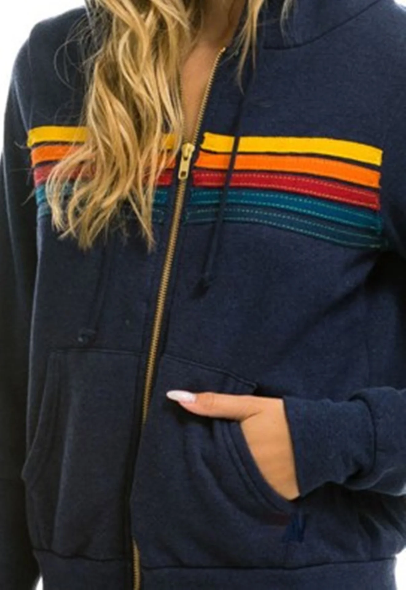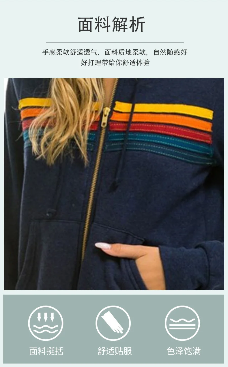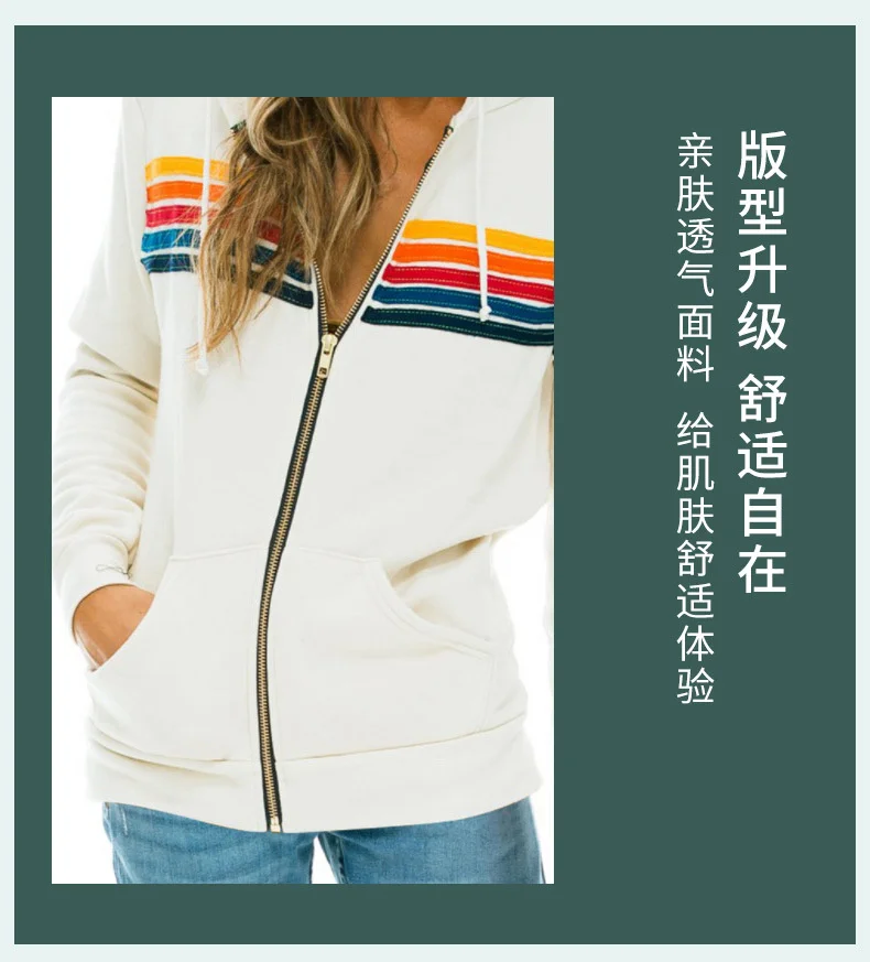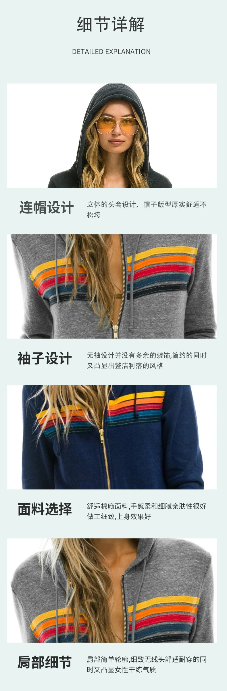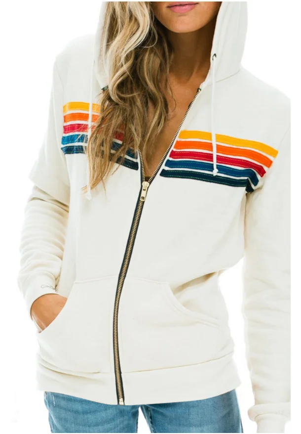 2024 Aviator Nation Women Men Zipper Rainbow Long Sleeve Hooded Sweatershirt Harajuku Elastic Hip Hop 5 Stripe Hoodies Jacket