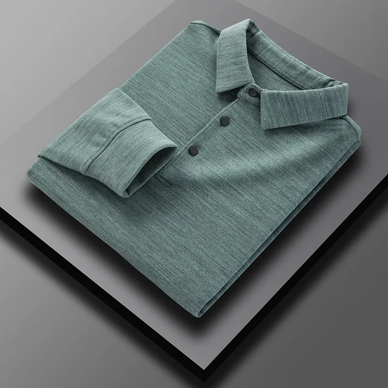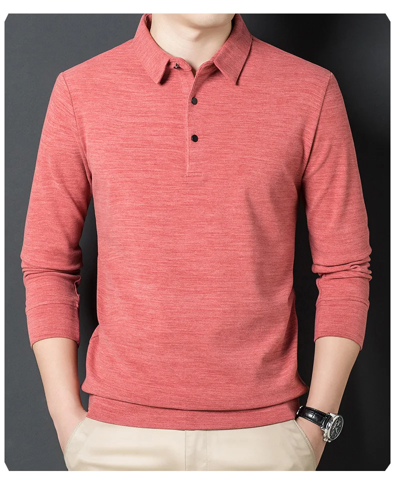2024 Men's Casual Warm Shirts Tops Solid Autumn Winter Thick Long Sleeve Polo Shirts Male T-Shirt Business Formal Basic Shirts