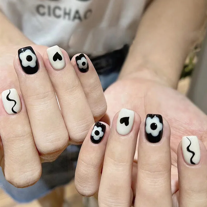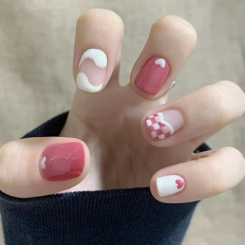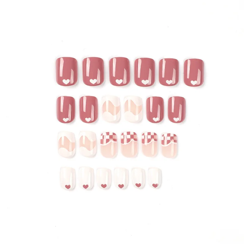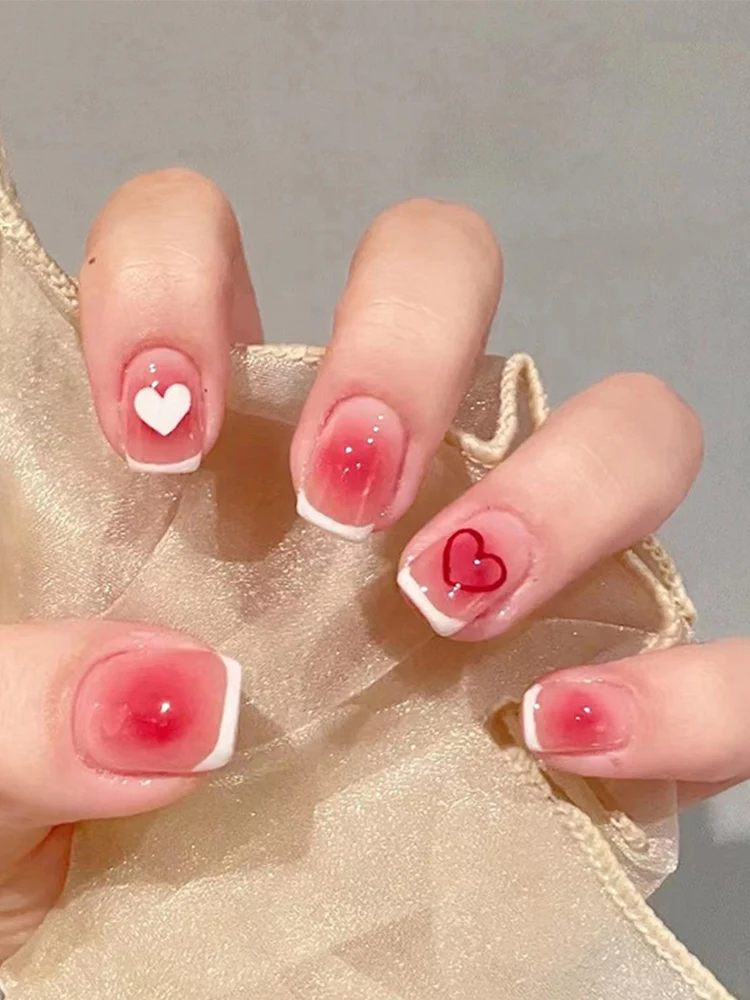 24pcs Short Square Fake Nails For Women Cute Bride Heart White French Tips Faux Ongles y2k Press On False Nail Nail kit polygel