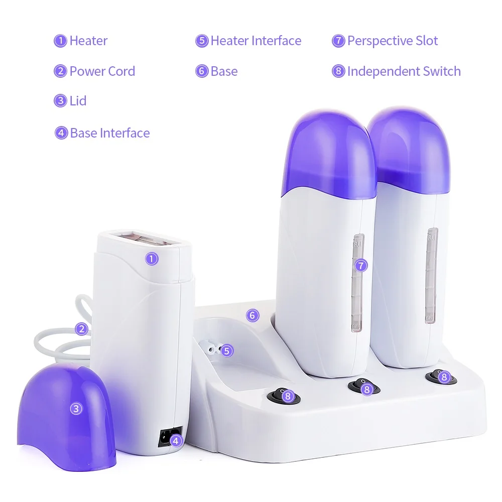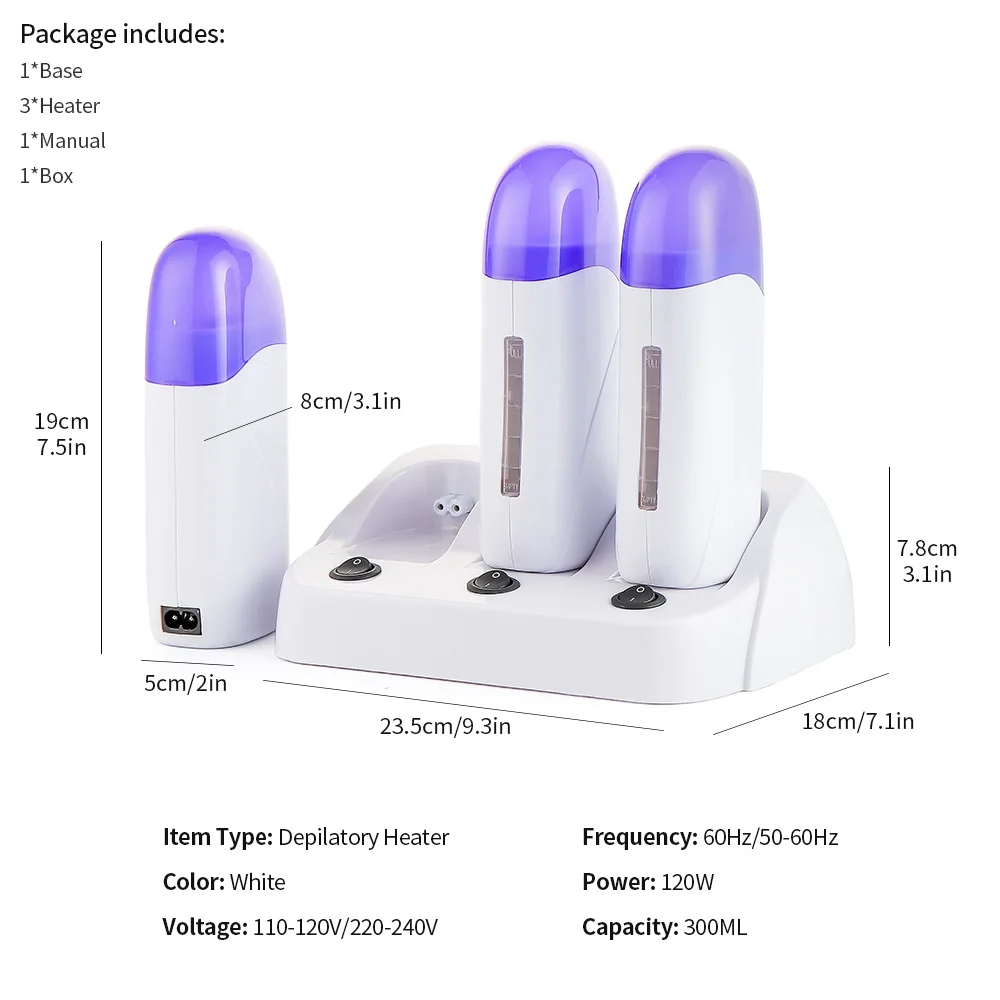3PCS Base Electric Wax Heater Set Depilatory Heater Hair Removal Waxing Machine Waxing Warmer Roll on Wax Heater Roller Epilator