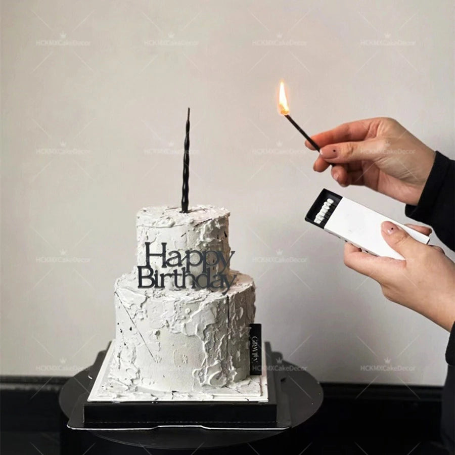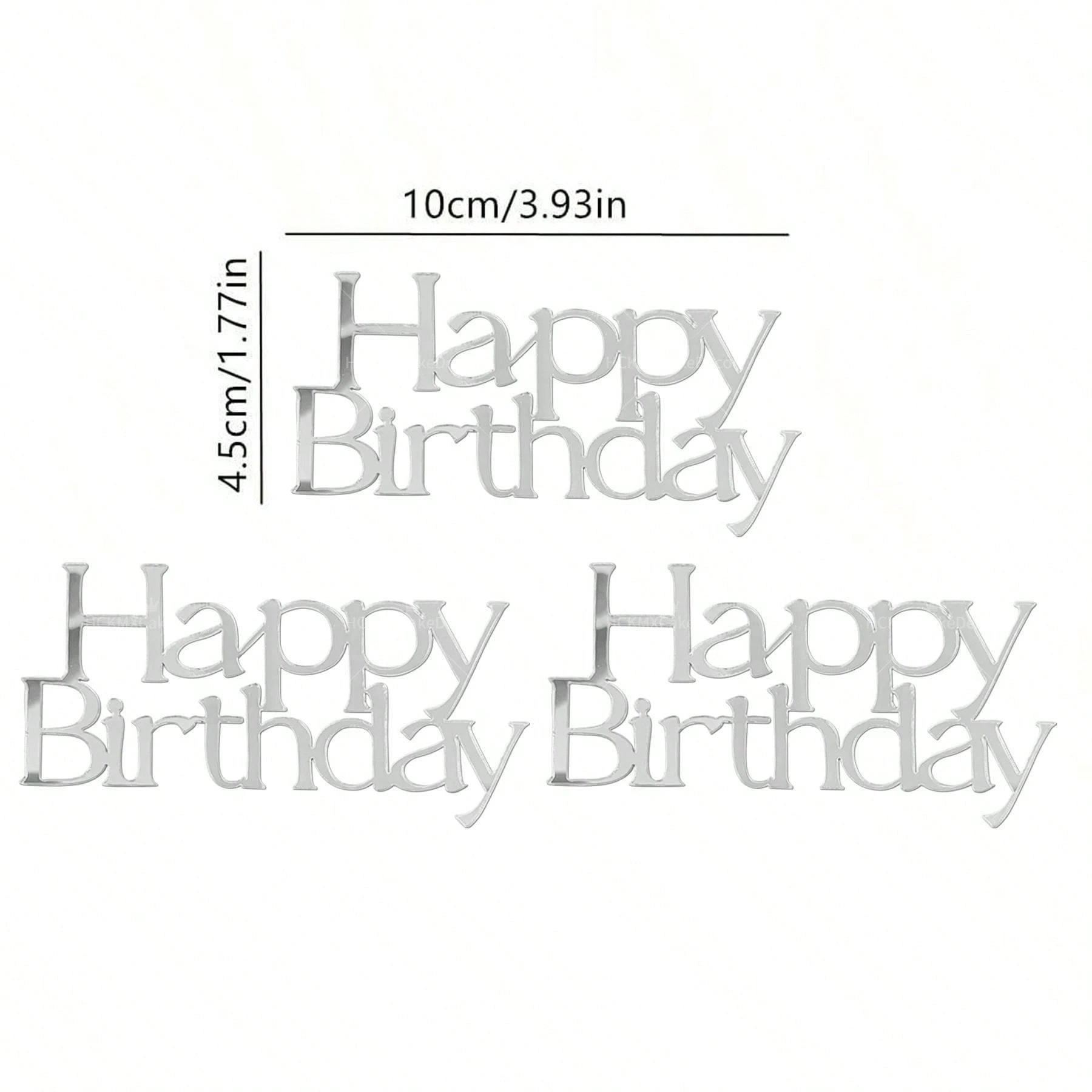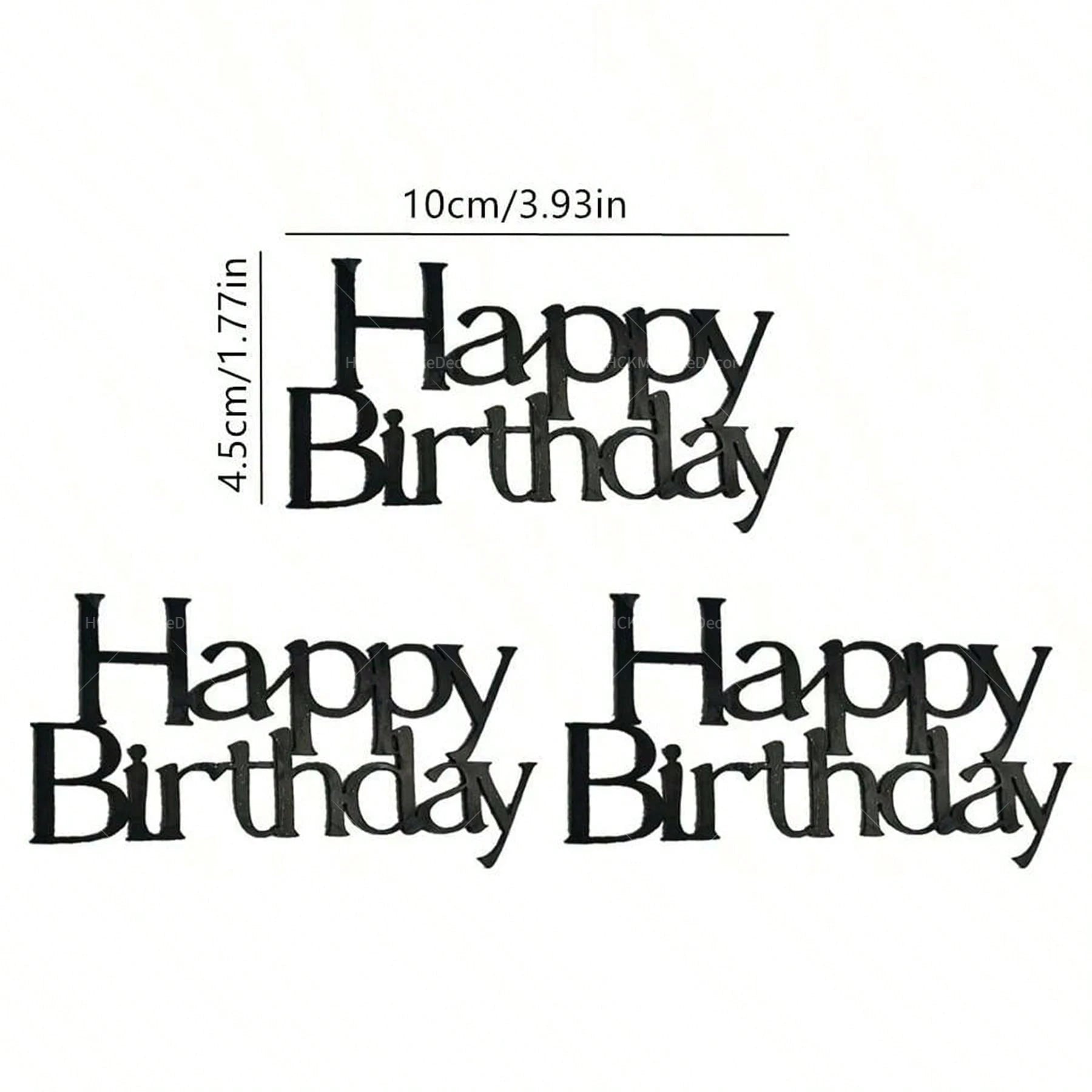 3PCS Happy Birthday Cake Topper Simple Lines Acrylic Gold Silver Black Dessert Toppers for Birthday Party Cake Decorations