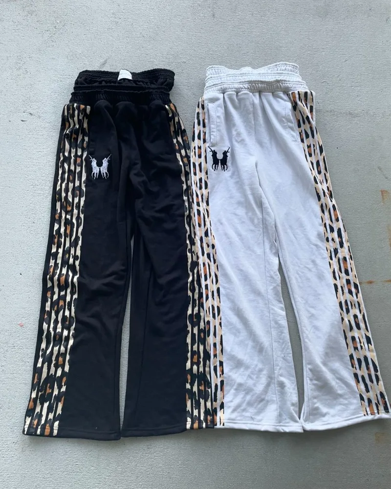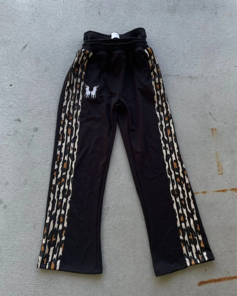 American Harajuku Retro Leopard Print Striped Trousers Men Y2k Fashion Floor Mopping Pants Loose Oversized Wide Leg Pants Women