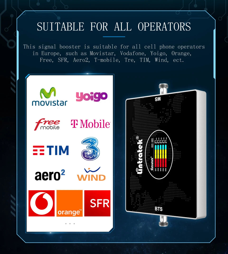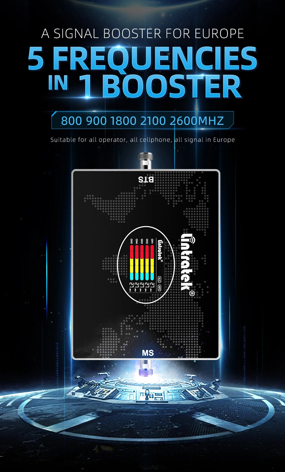 Lintratek 5 Five Band Repeater 800 900 1800 2100 2600 Mhz Cellular Amplifier GSM 2G 3G 4G Signal Booster LTE B7 B20 AGC Internet