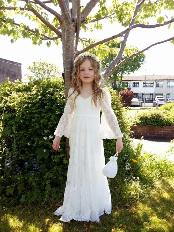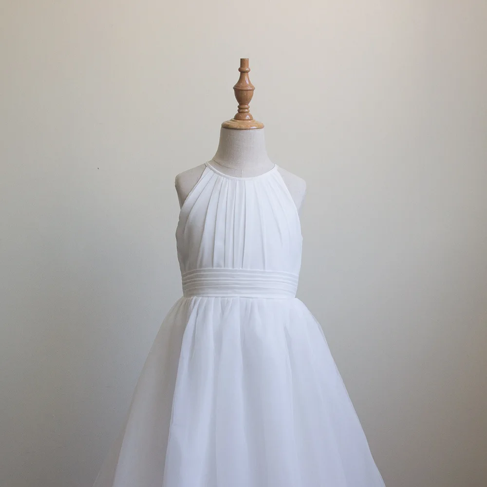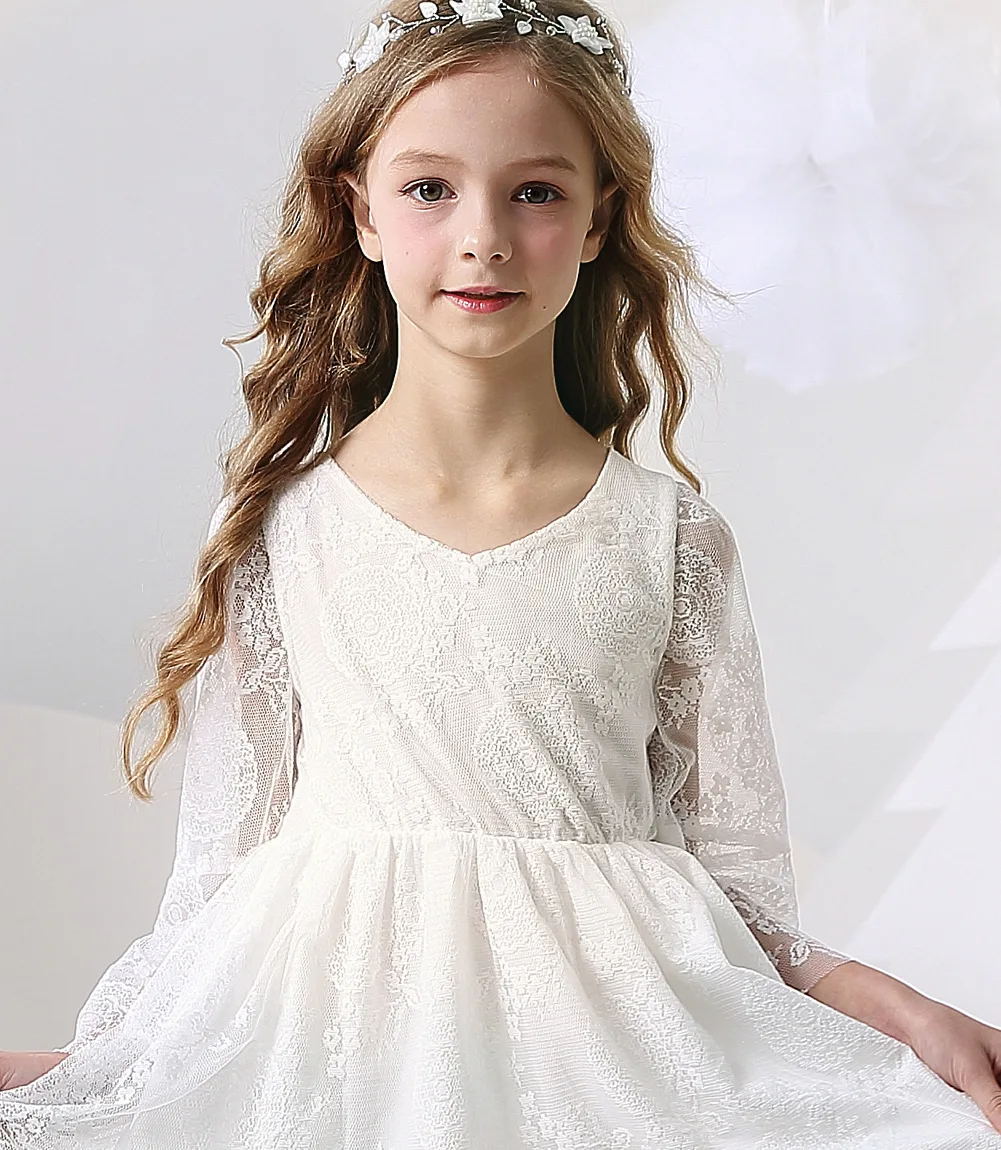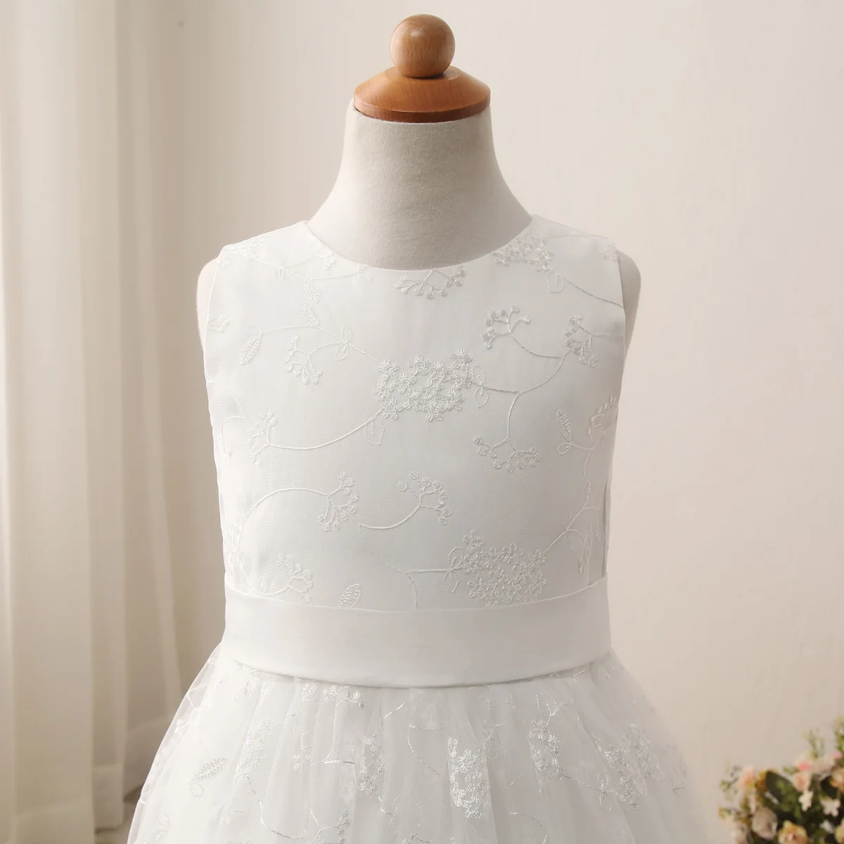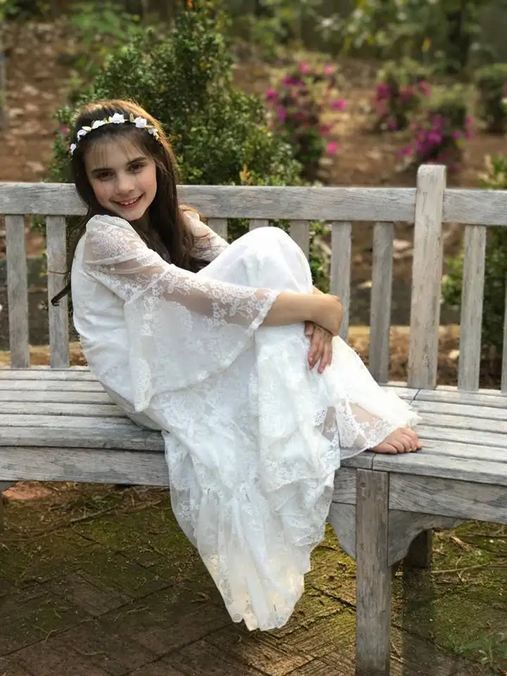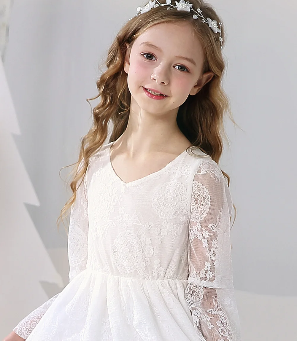 Princess Girls Lace Chiffon Long Dresses Kids Flower Girl Wedding Dress Summer Boho Birthday Party Wedding Dress For 2-14 Years