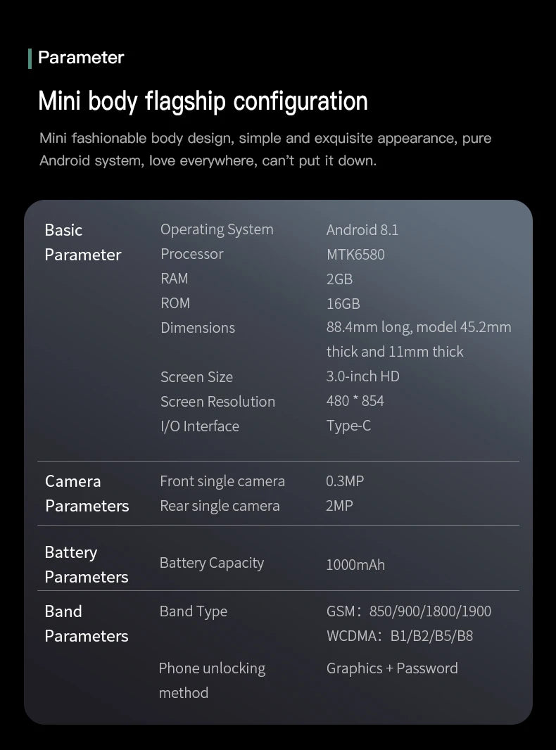 SOYES S23 Mini Smartphones Android 8.1 Dual SIM 3.0'' HD 1000mAh Battery WIFI Bluetooth 3G Small Mobile Phone