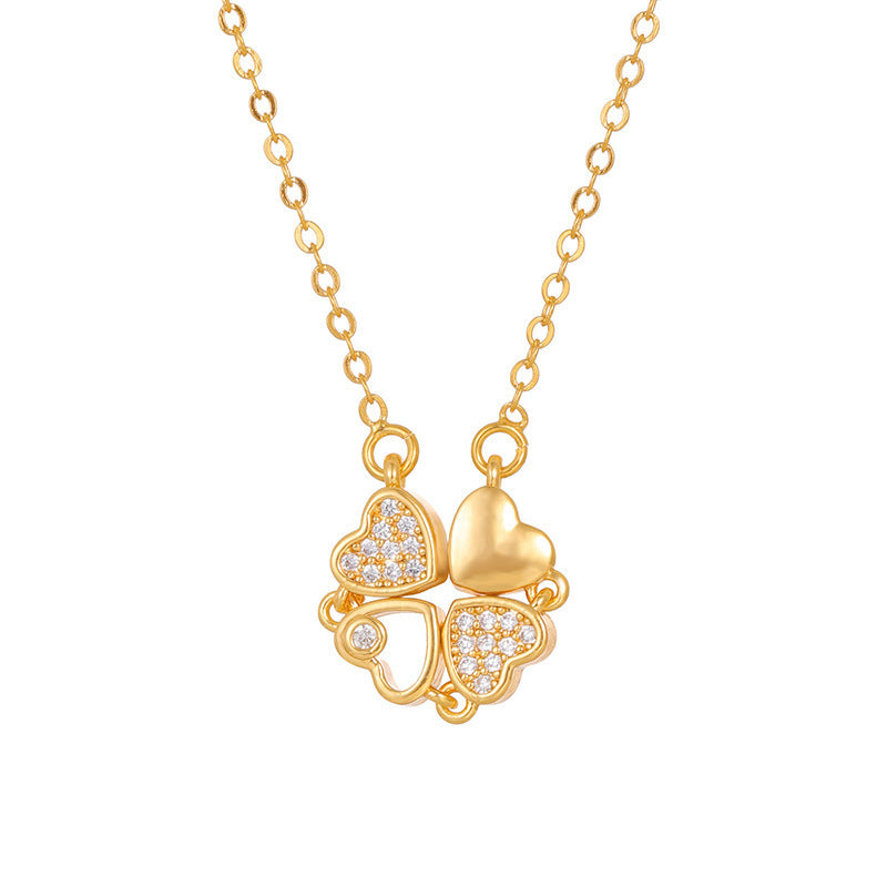 Women's Titanium Steel Folding Clover Necklace