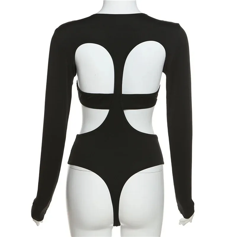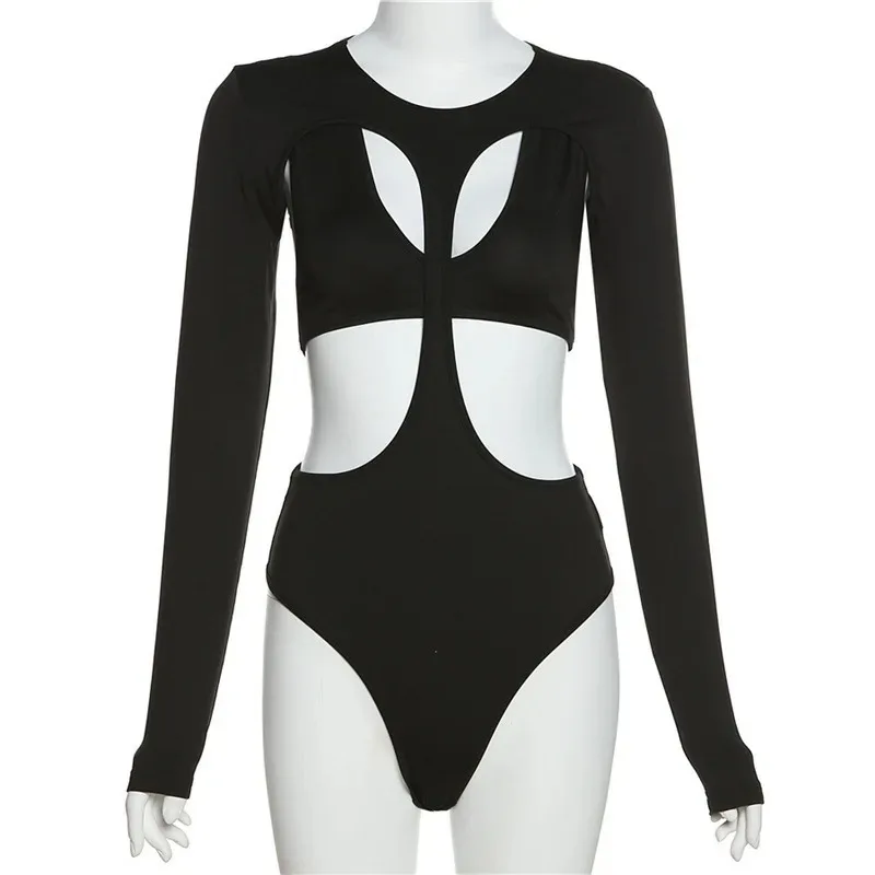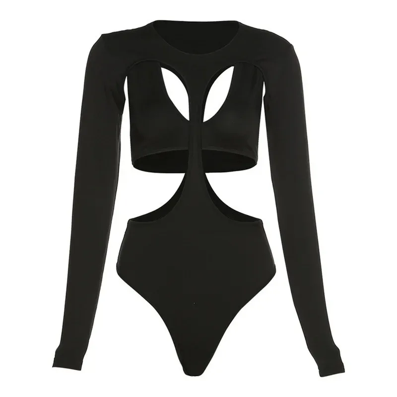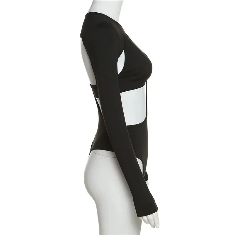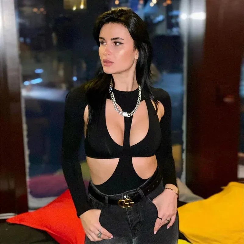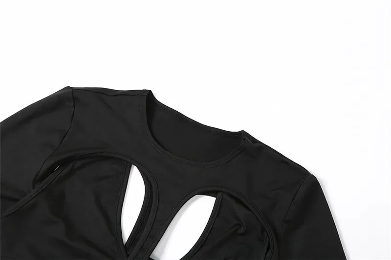 Y2k Europe and America's top women's tights traf fashion round neck long sleeve black tights sexy party nightclub irregular jump