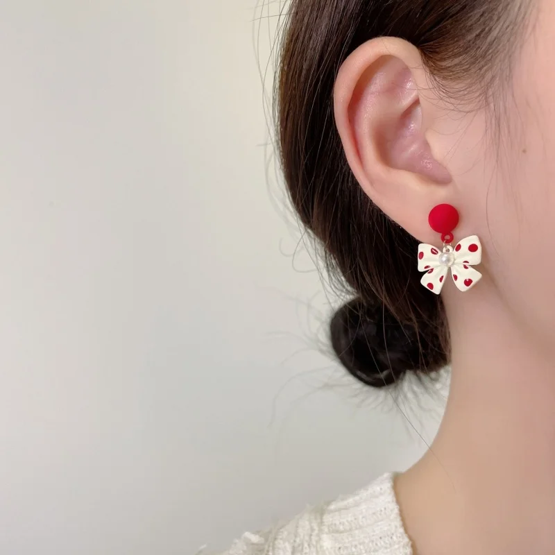 1 Pair Fashion Bowknot Imtation Pearl Cute Zinc Alloy Drop Earrings for Women Party Wedding Jewelry Accessories 2024
