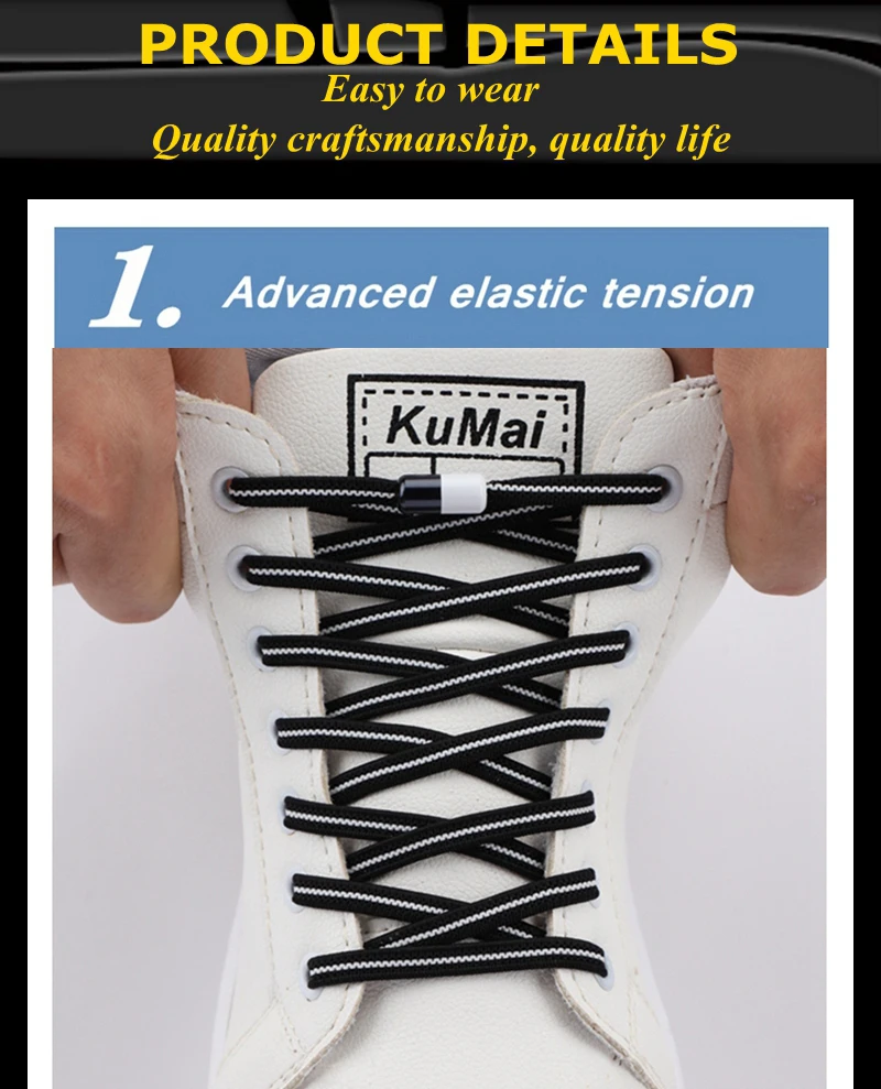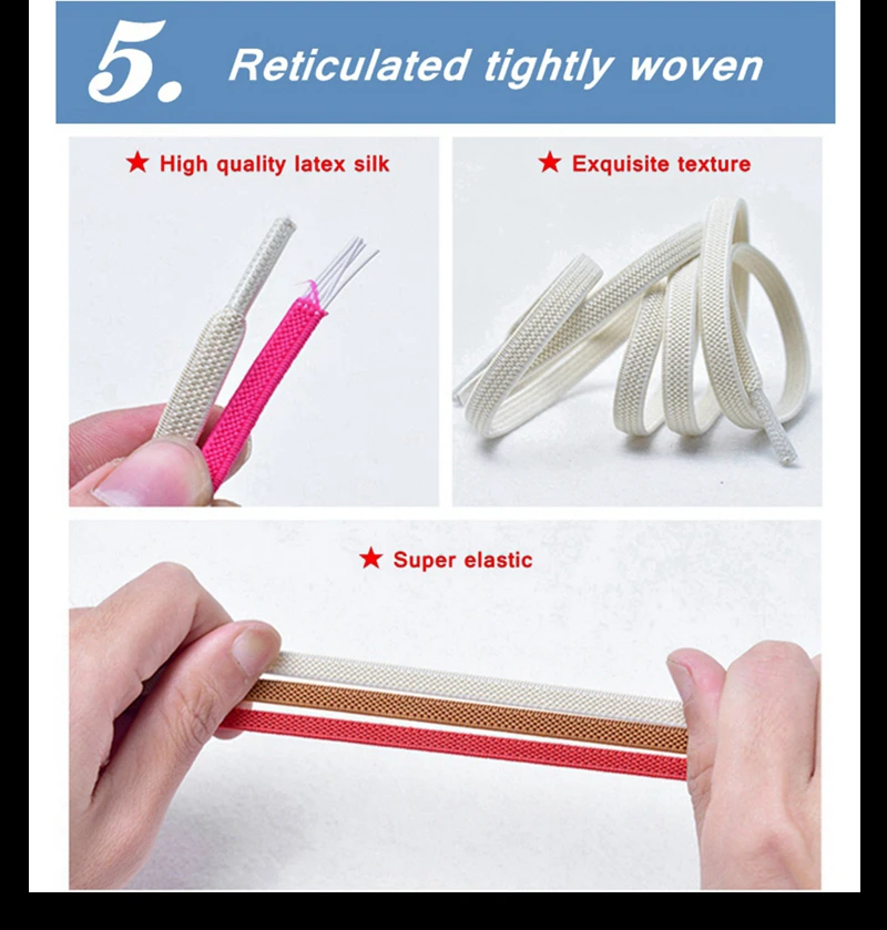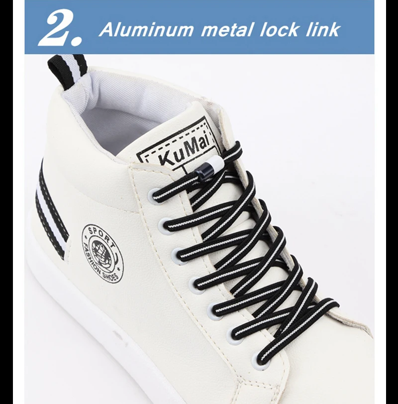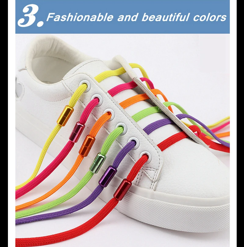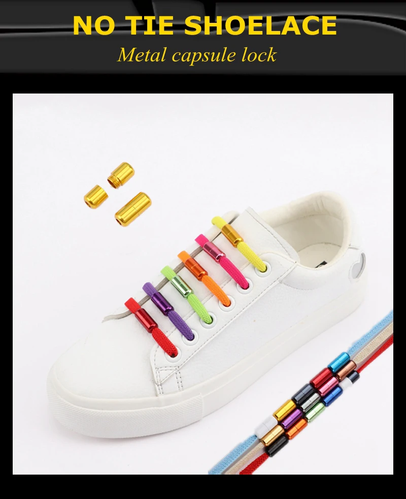 1 Pair No Tie Shoelaces for Sneakers Elastic Flat Shoe Laces Metal Lock Without Ties Quick Tieless Shoelace for Shoes Kids Adult