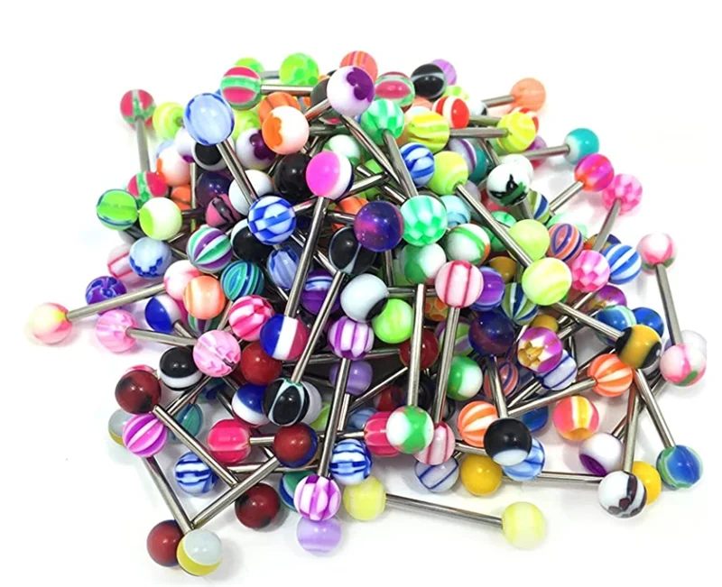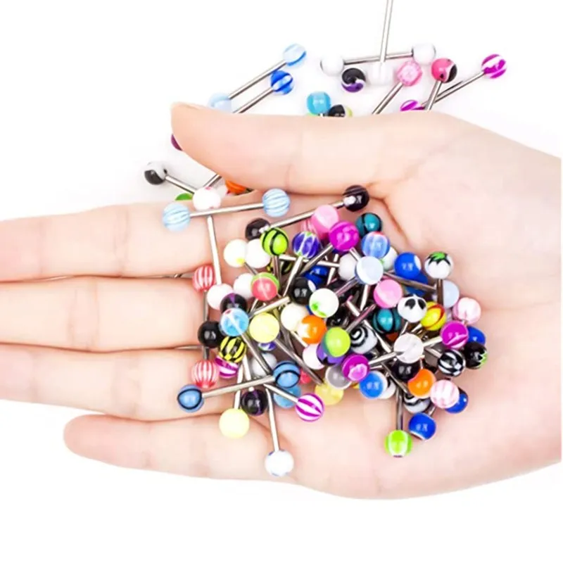 10/20/30PCS Stainless Steel Mix Tongue Piercing Lot Acrylic Tongue Piercing Bar Bulk Nipple Bar Pack Tongue Ring Snake Eyes Lot
