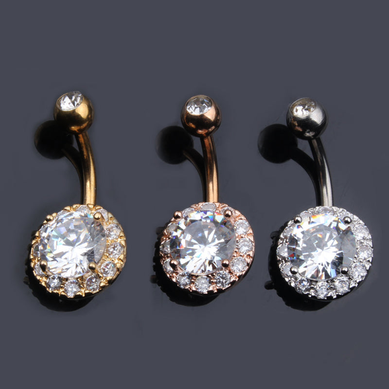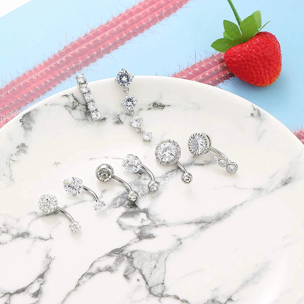 10 Styles Sexy Dangling Navel Belly Button Ring Oreja 14G Double Round Cubic Zirconia 316L Surgical Steel Belly Piercing Jewelry