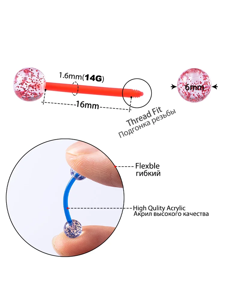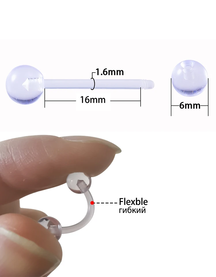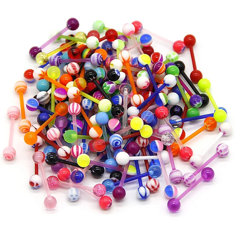 10PCS Colorful Flexible Tongue Piercing Barbell Tongue rings Silicone 14G Tragus Helix Ear Piercing women Punk piercing Jewelry