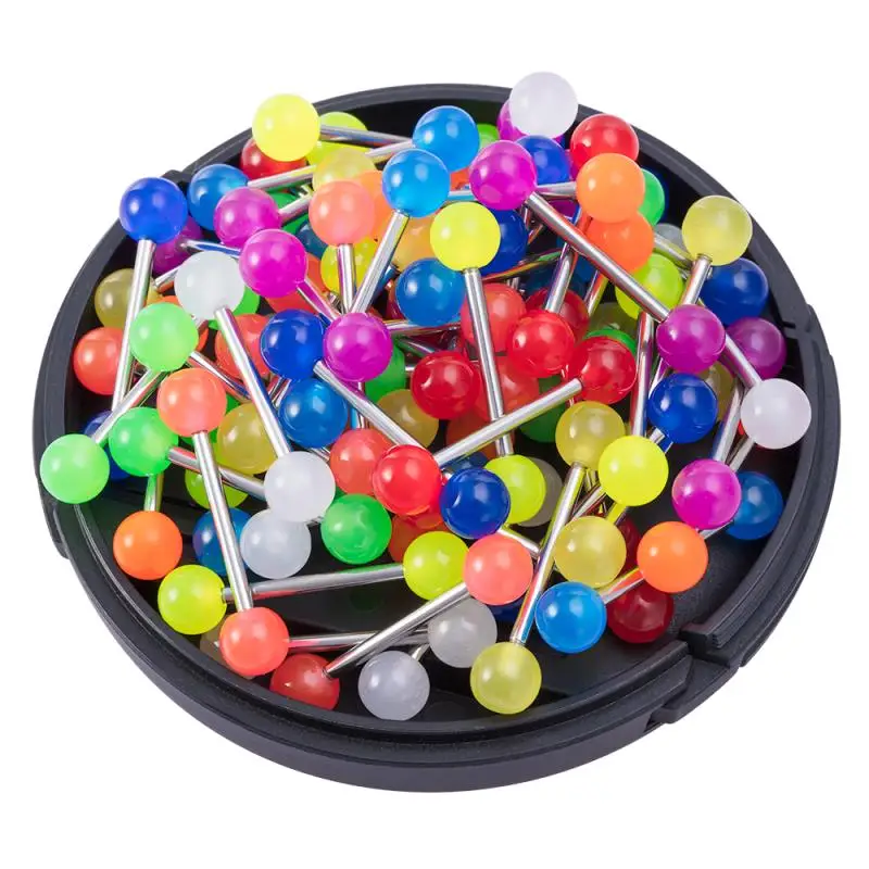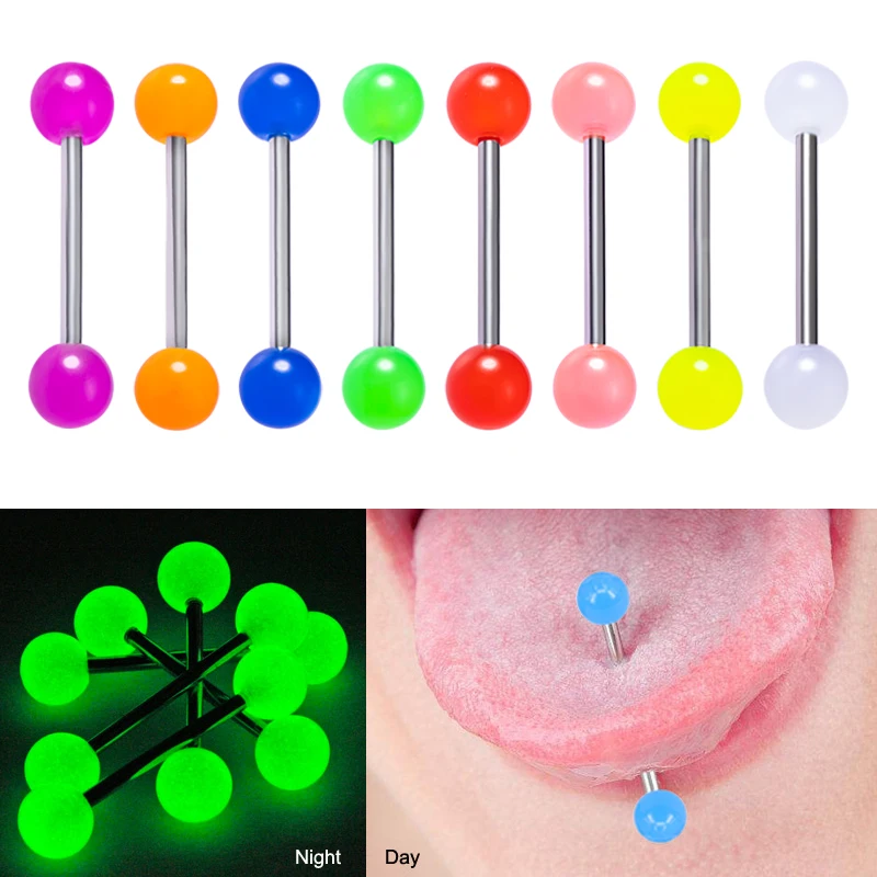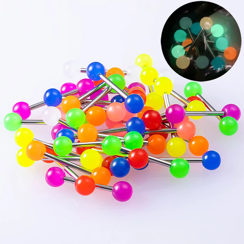 10pcs Glow In The Dark Acrylic Tongue Ring Piercing Stud Nipple Barbell Luminous Cartilage Tragus Bar for Women Body Jewelry 14G
