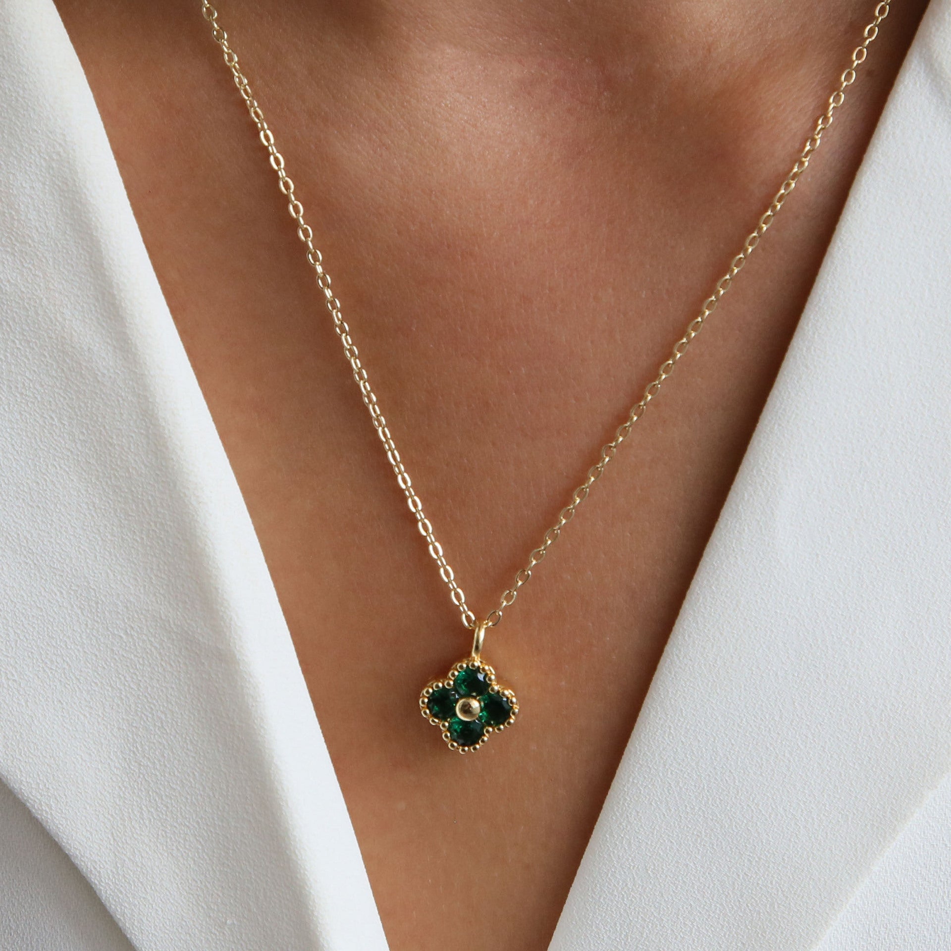 18K Brass Micro-inlaid Four-leaf Clover Fashion Necklace