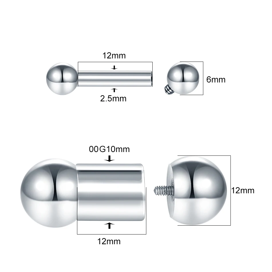1Pc 12G-00G Stainless Steel Tongue Straight Barbell Nipple Intimate Piercing Tragus Ear Piercing Internal Thread Sexy Jewelry