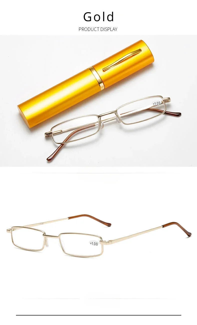 1pc Women Men Computer Glasses Mini Folding Reading Glasses +1.0 To 4.0 Portable Container Presbyopia Pen Glasses with Box