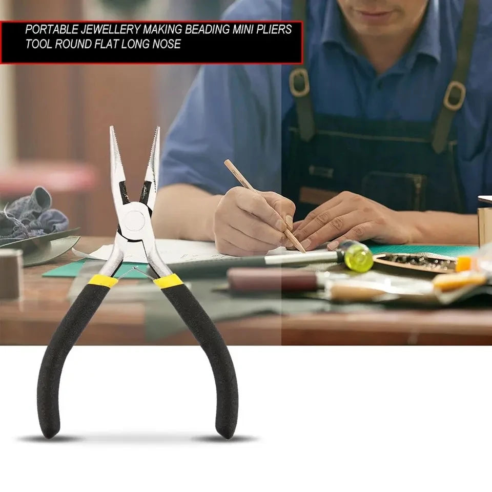 1Pcs Portable Durable Carbon Steel Forging Jewellery Pliers Light Weight Mini Pliers Hand Tools Round Flat Long Nose Pliers