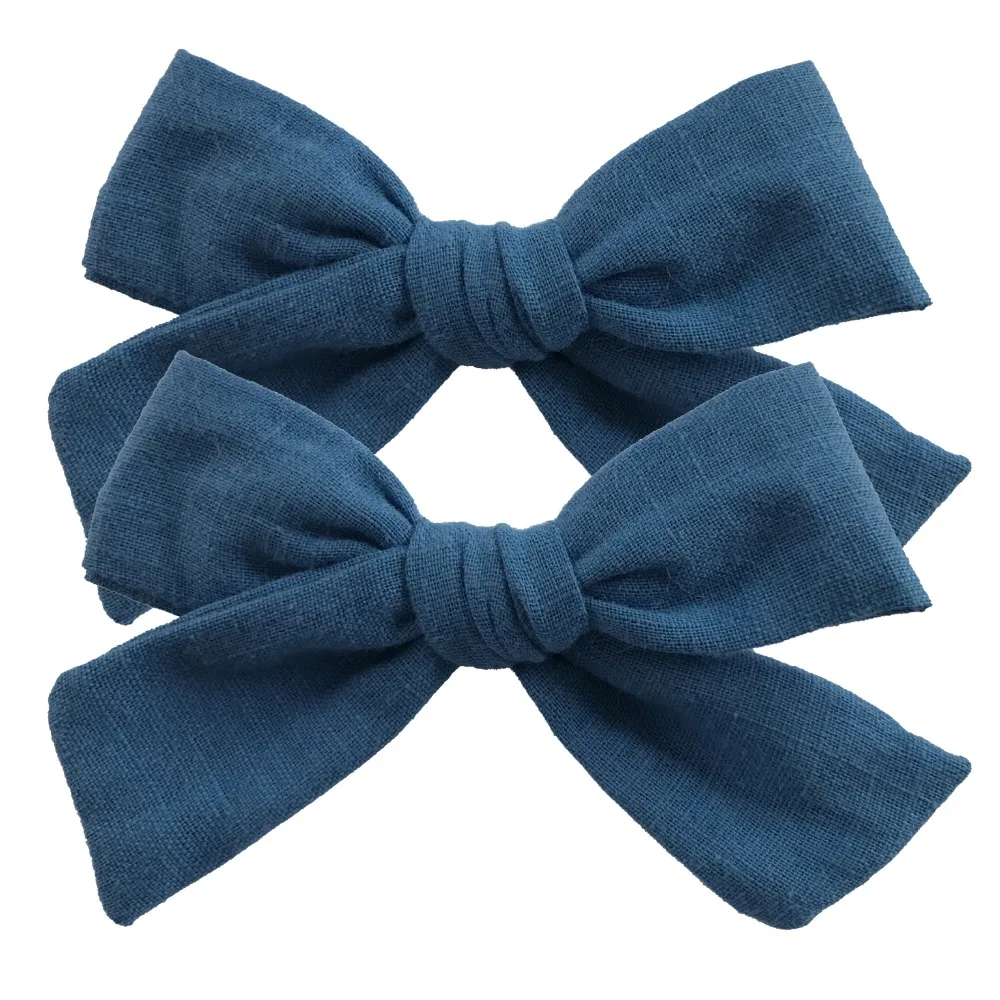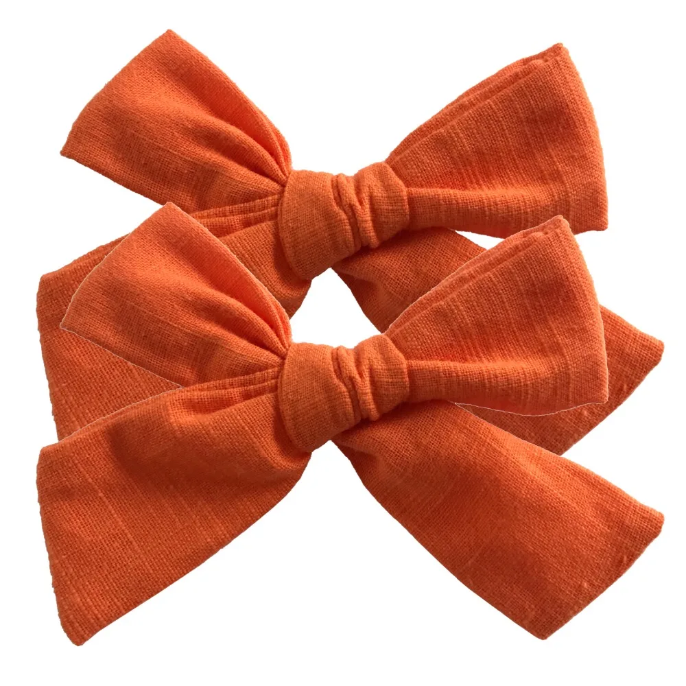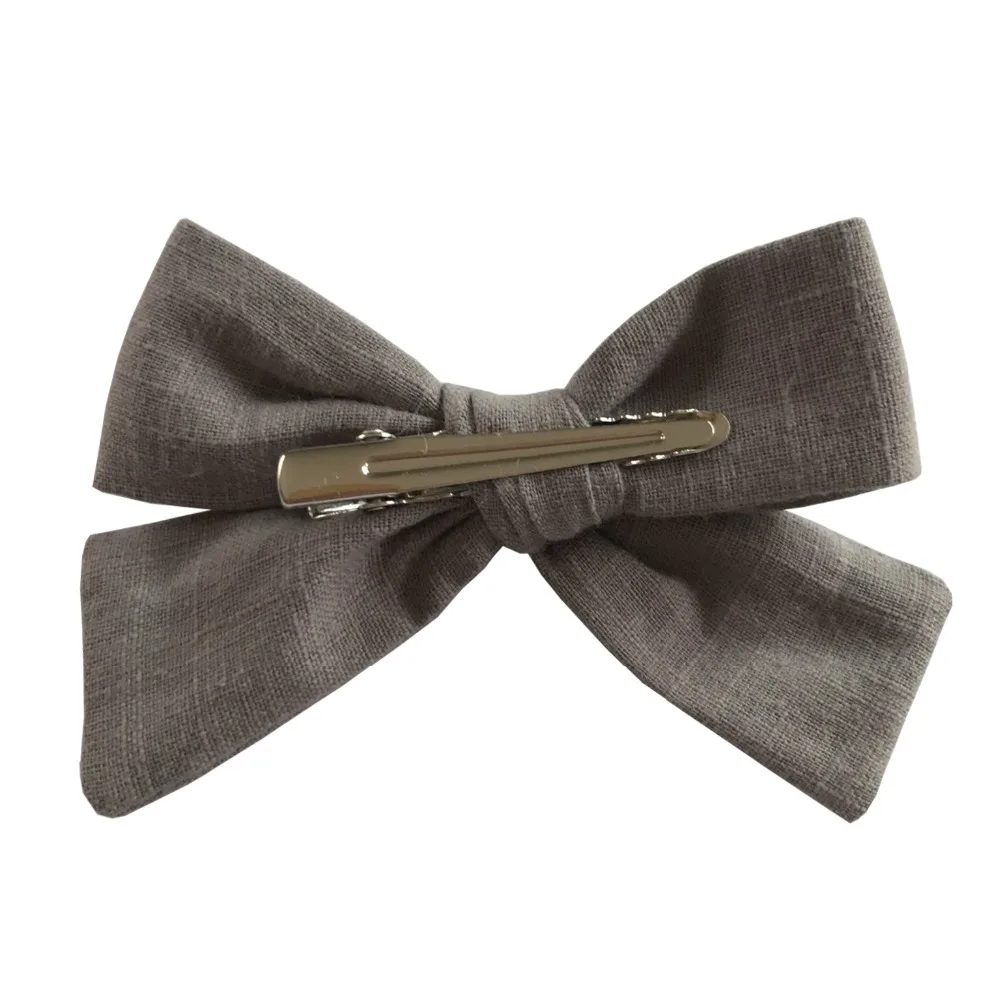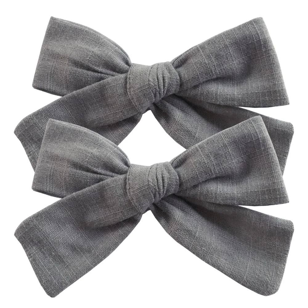 2 PCS 4 inch Linen Bow Hair Clips for Baby Girls Infant Kids Knot Hair Bow Barrettes Hairgrips Hair Accessories