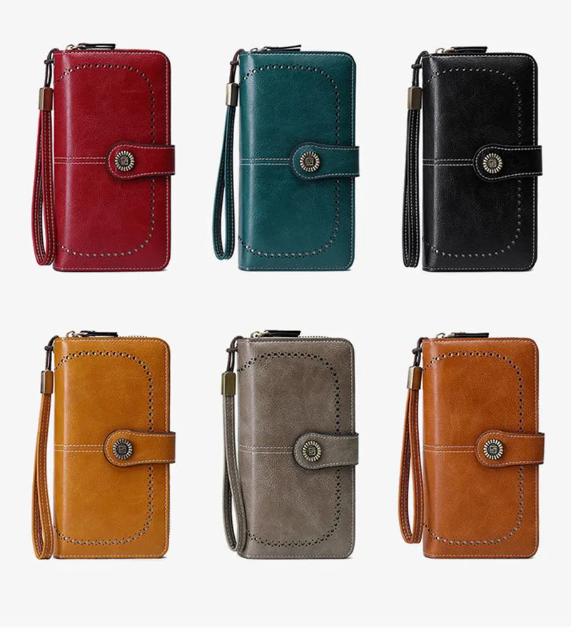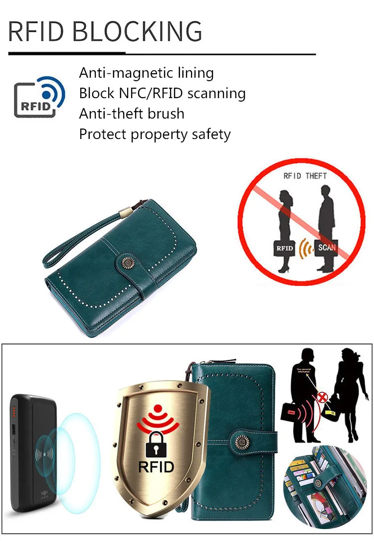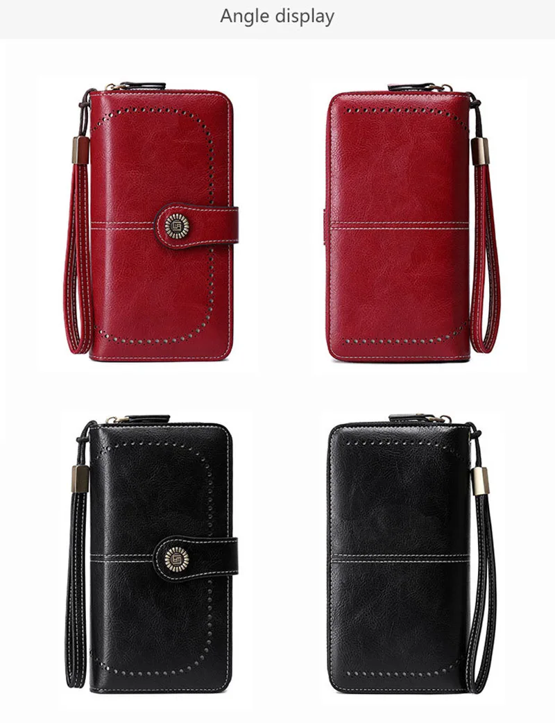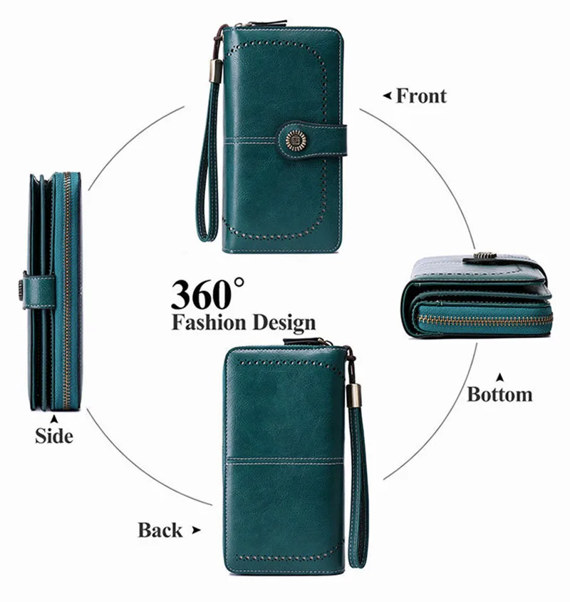 2022 New Long Rfid Womens Wallets Large Phone Holder Zipper Print Women Purse PU Leather Multifunction Card Holder Female Wallet