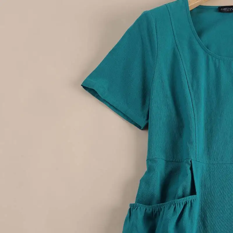 2023 ZANZEA Women Summer Dress O Neck Short Sleeve Robe Vintage Solid Work Dresses Holiday Vestidos Causal Knee Length Sundress