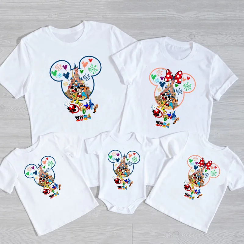 2024 Disney Trip Shirts Funny Mickey Minnie Family Matching Outfits Look First Disneyland Trip Mom Dad Kids Tshirt Baby Clothes