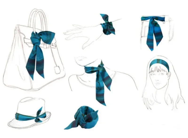2024 New Luxury Plain Butterfly Woman Decorative Fashion Ribbon Tie Bag Silk Scarf Small Scarf Headband