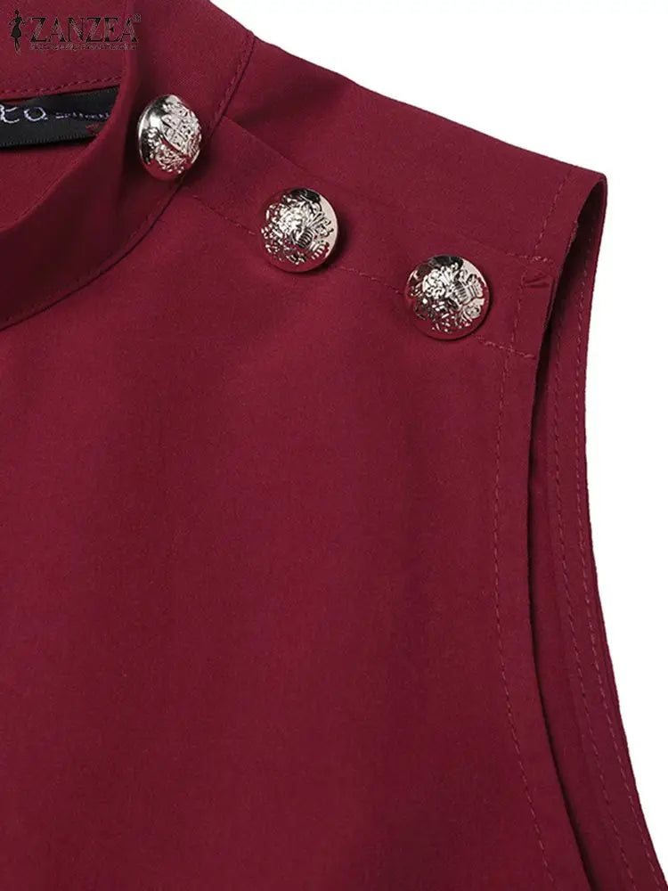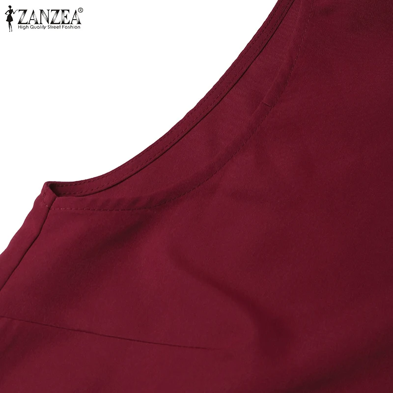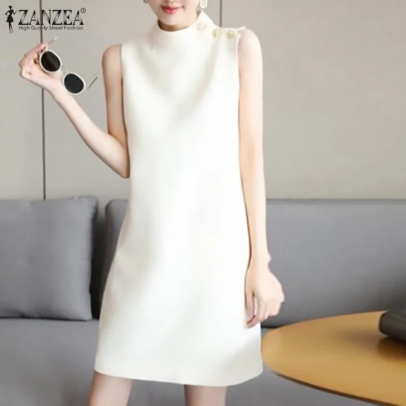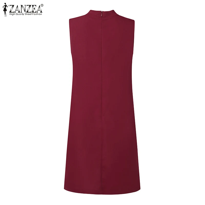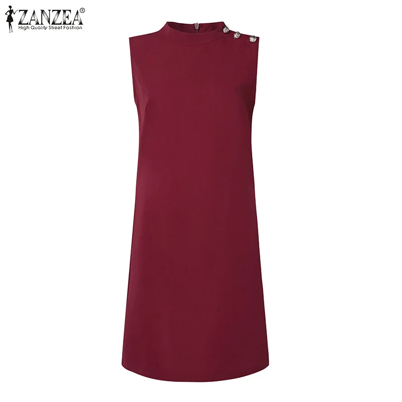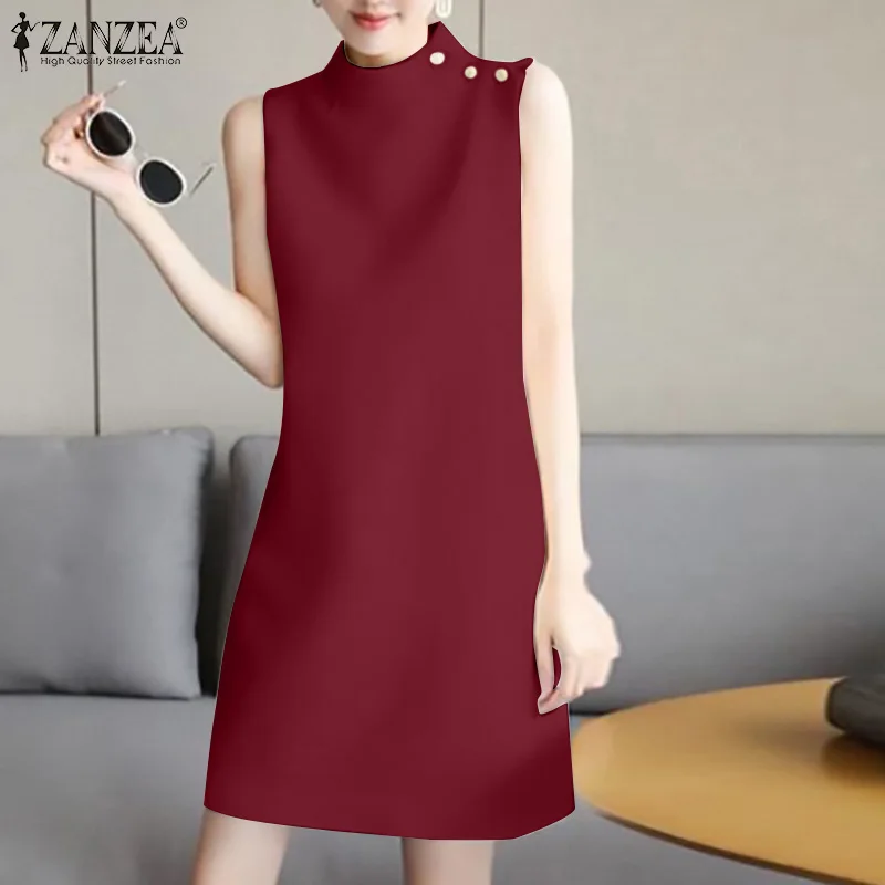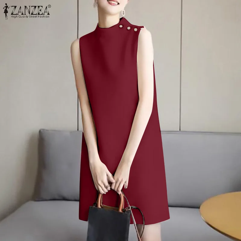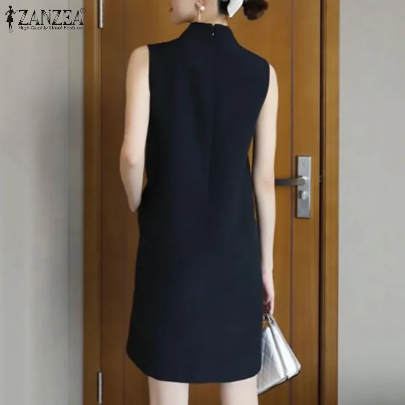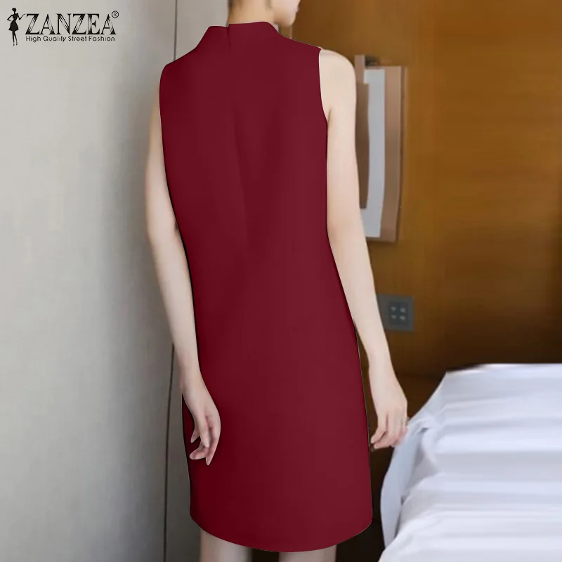 2024 ZANZEA Office OL Sundress Fashion Summer Dress Women Sleeveless O-Neck Party Vestidos Solid Tanks Robe Elegant Work Dress