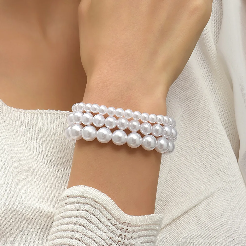 4-10mm Imitation Pearl Beads Free Adjust 18cm Girth Elastic Bracelet for Women Various Sizes or Chain Customizable Wedding Gift