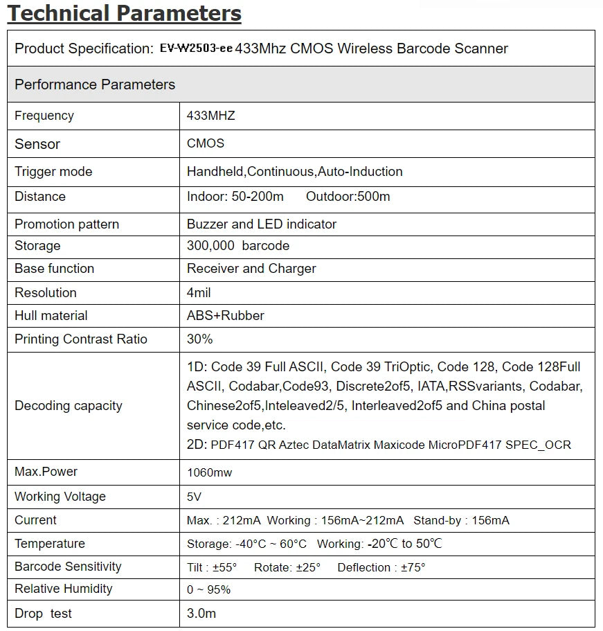 500m Long Transmission Distance Barcode Scanner Yellow Color Wireless QR Reader for Warehouse 433MHz Bar Code Reader with Stand