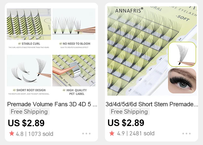 ANNAFRIS W Shape 6D Volume Eyelash Extension False Mink Soft Natural Premade Fans Lash 6D W Shaped Easy Faning Eyelashes