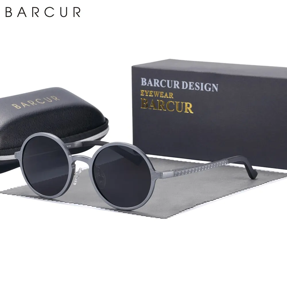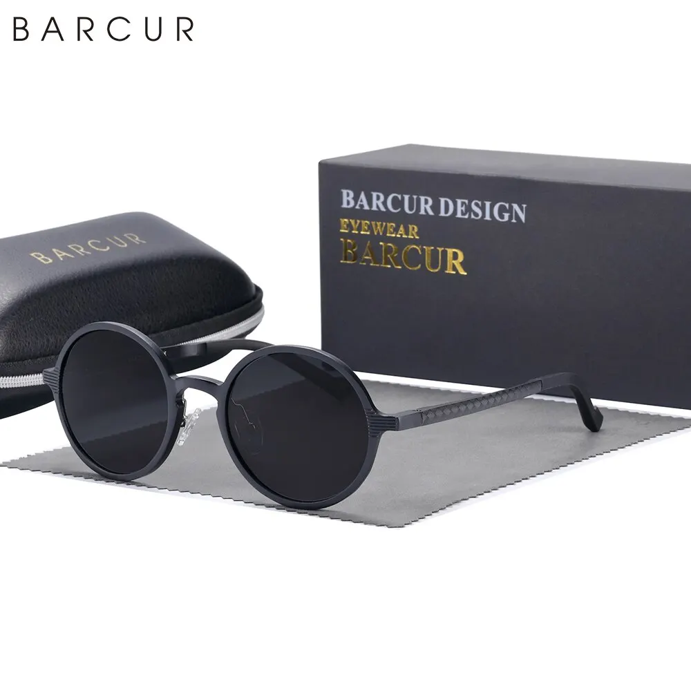 BARCUR Hot Black Goggle Male Round Sunglasses Luxury Brand Men Glasses Retro Vintage Women Sun Glasses UV400 Eyewear