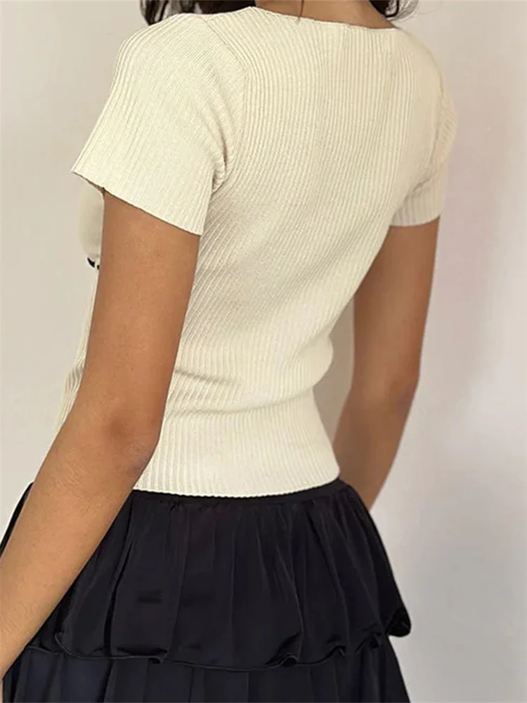 CHRONSTYLE Women Summer Crop Tees Shirts Tops Short Sleeve Round Neck Patchwork Ribbed Slim Fit T-shirts Party Streetwear 2024