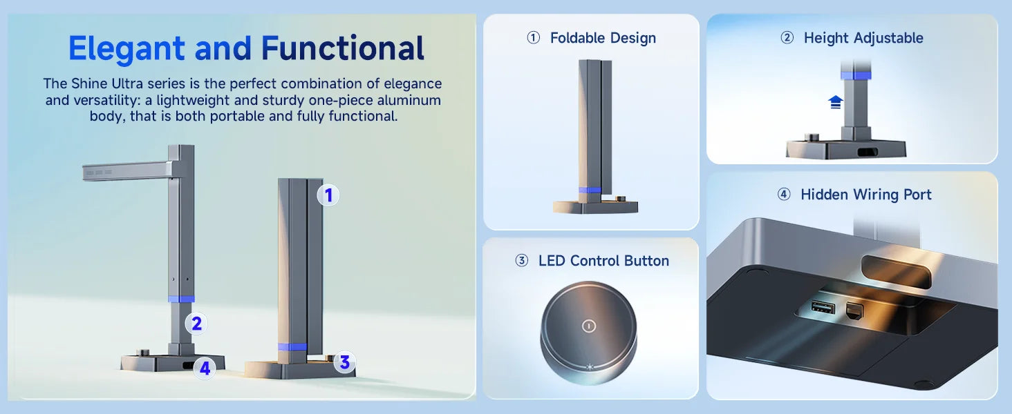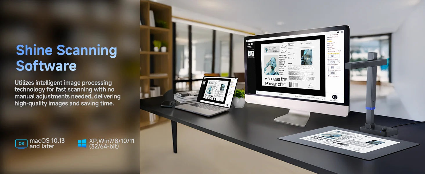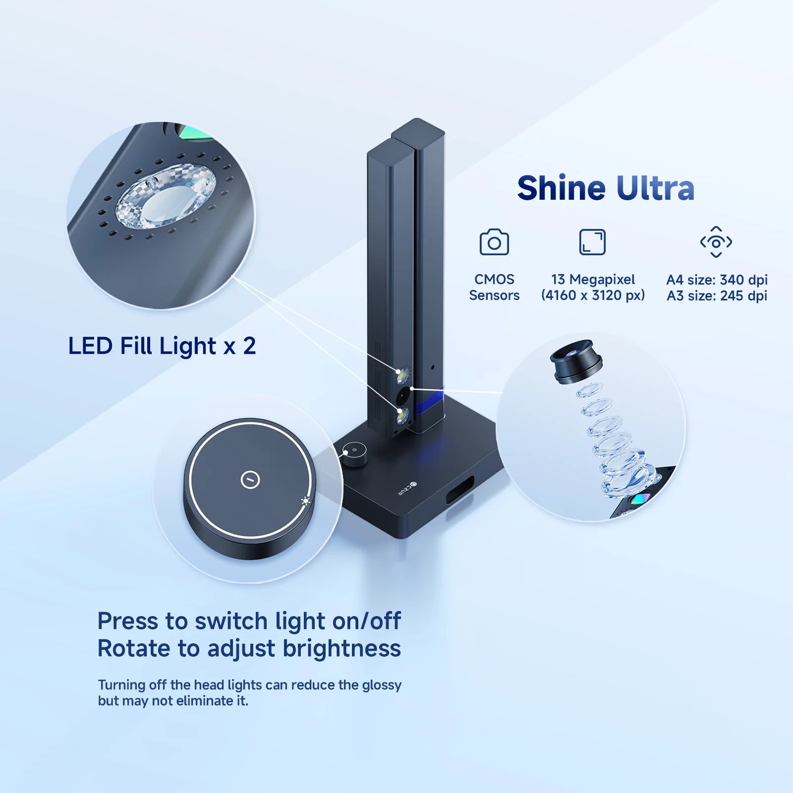 CZUR Shine Ultra Portable 13MP Book Scanner Flatten Curve Technology Capture Max A3 Document Fast Scan for Office Library School