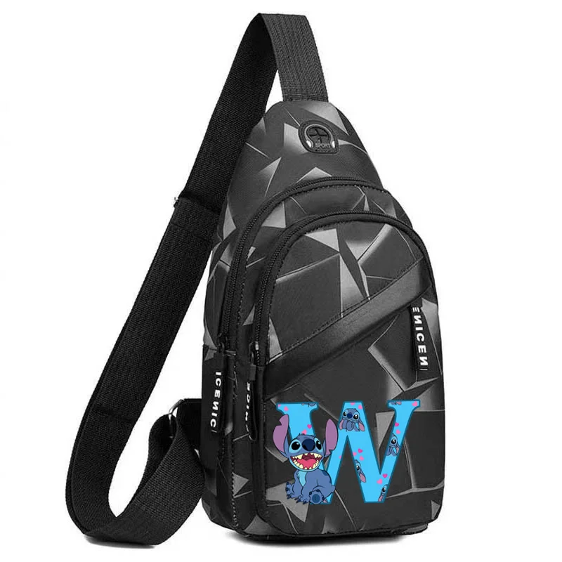 Disney Lilo & Stitch A-Z English Letters Men's Trend Multifunctional Chest Bag Shoulder Bag Casual Messenger Bag Handbags 2024