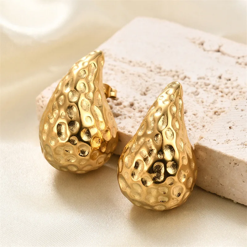 Exaggerate Irregular Water Drop Gold Color Metal Oversize Dupes Thick Drop Earrings Lightweight Glossy Teardrop Earring Jewelry