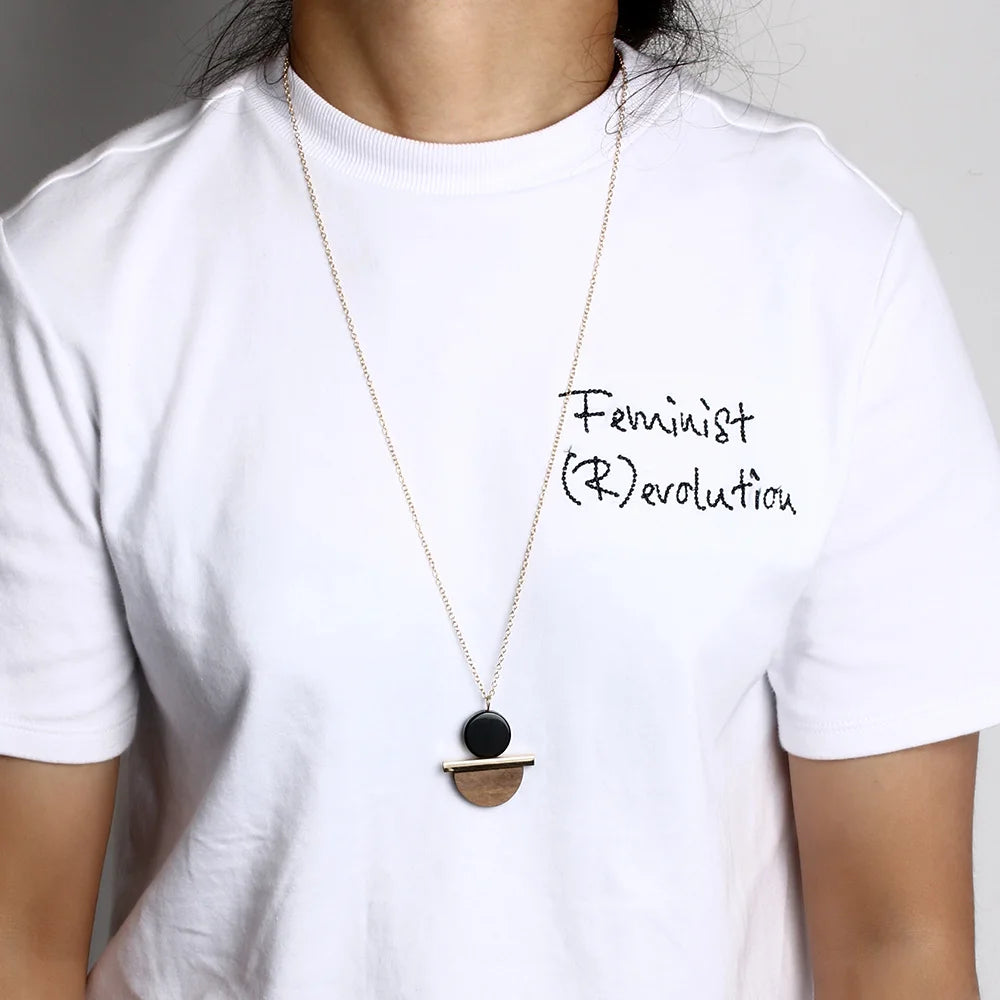Geometric Circular Resin Wood Vintage Pendant Gold Alloy Chain Long Necklace Unisex Fashion Jewelry Pendant Necklace Free Ship
