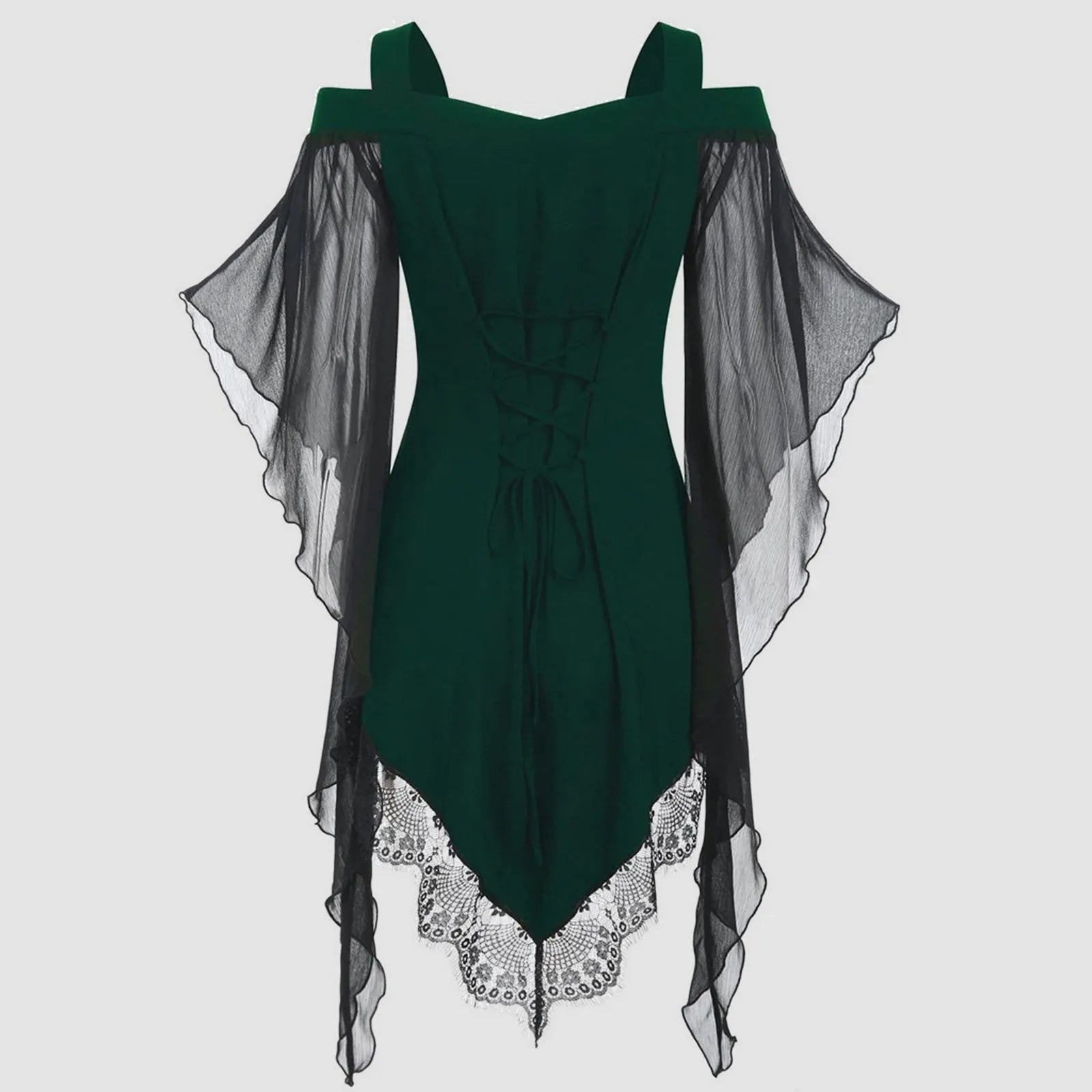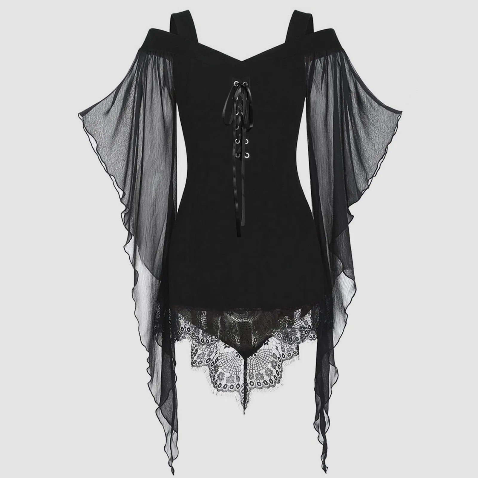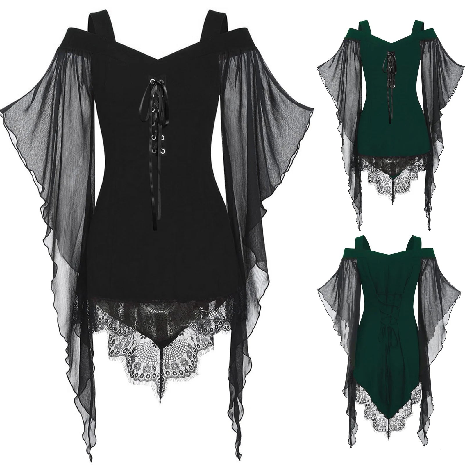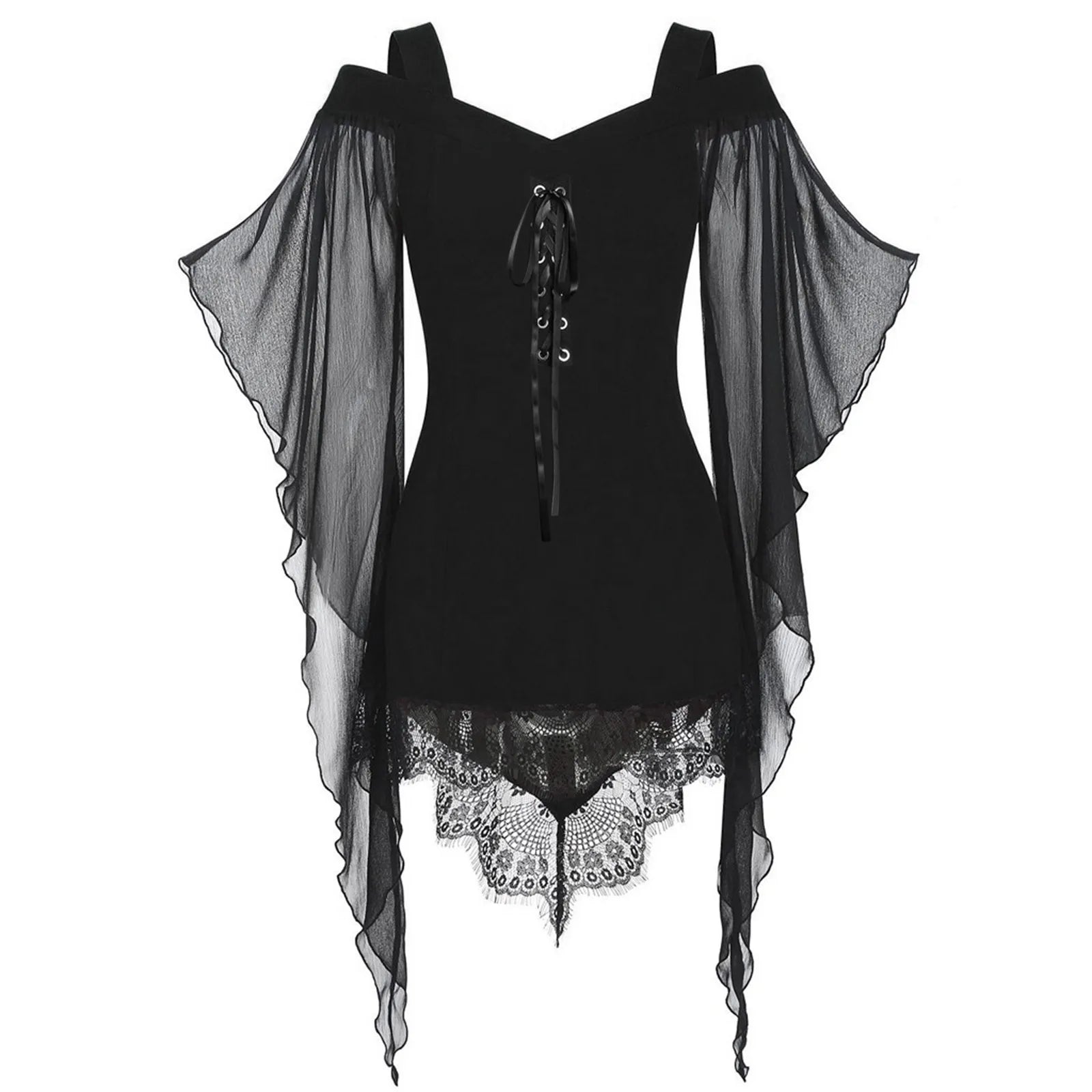 Gothic Black Dresses for Women Insert Lace Women Size Sleeve Gothic T Shirt Tops Plus Women's Power Ranger Cosplay Costume Adult