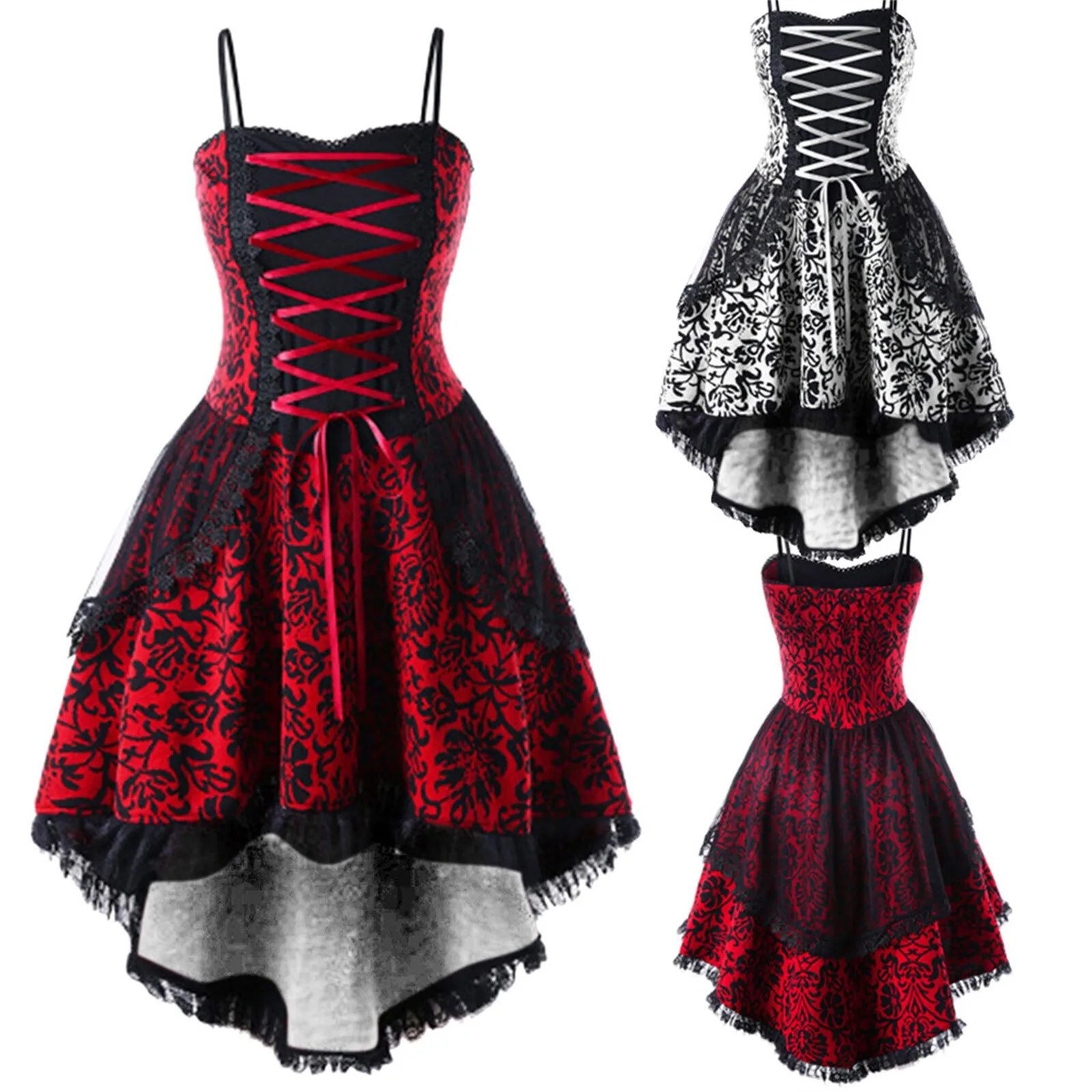 Halloween Cosplay Costume Lace Gothic Vintage Dress Women Irregular Sleeve Dresses Robe Medieval Ghost Vampire Clothing