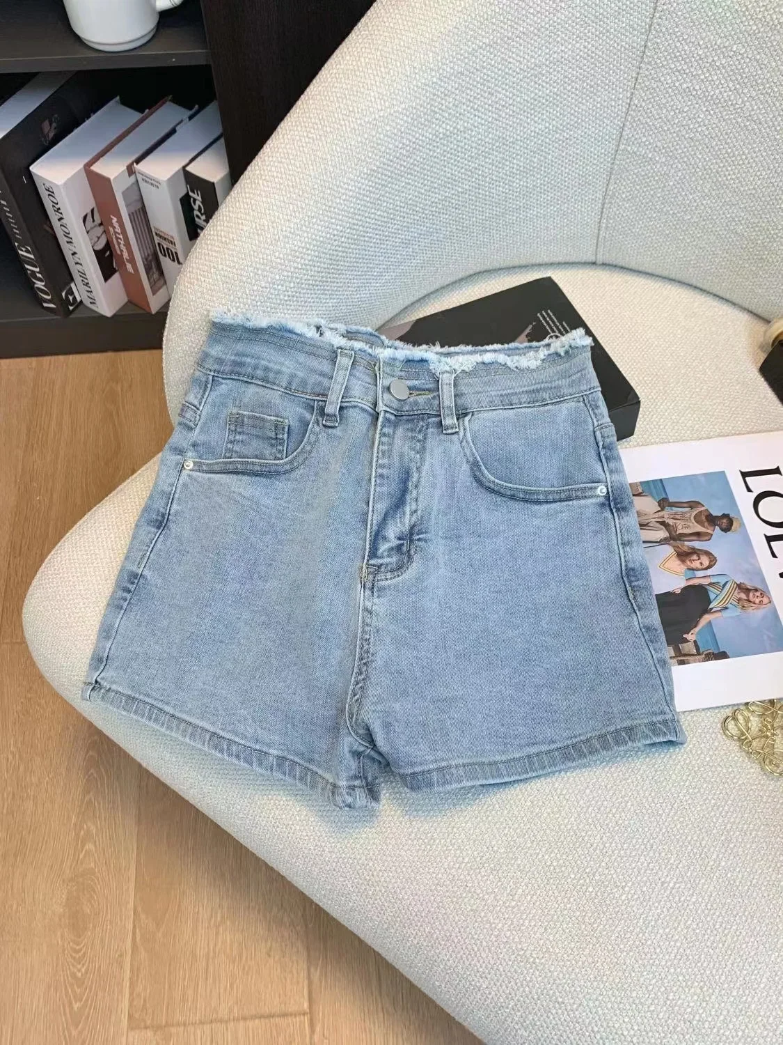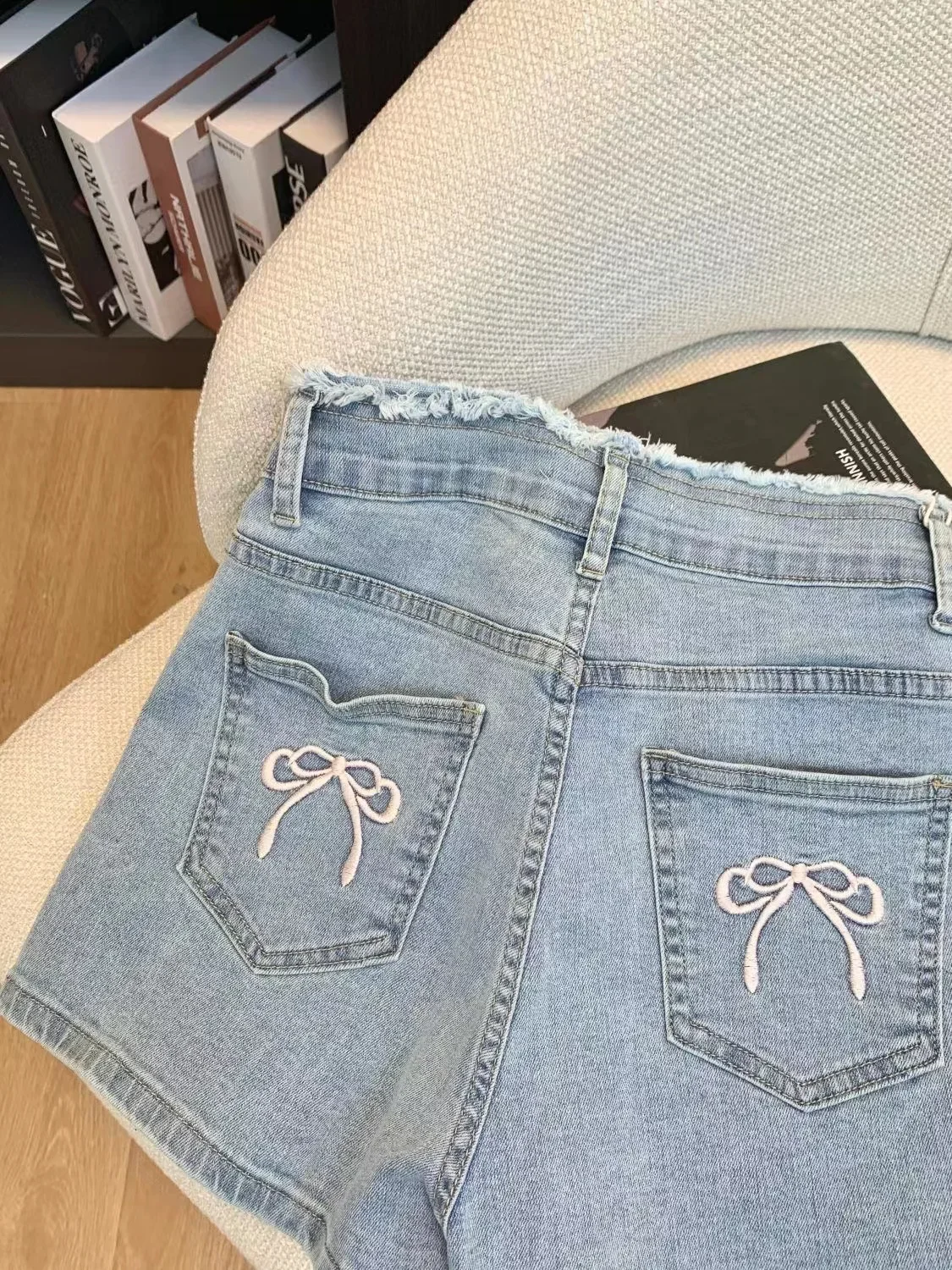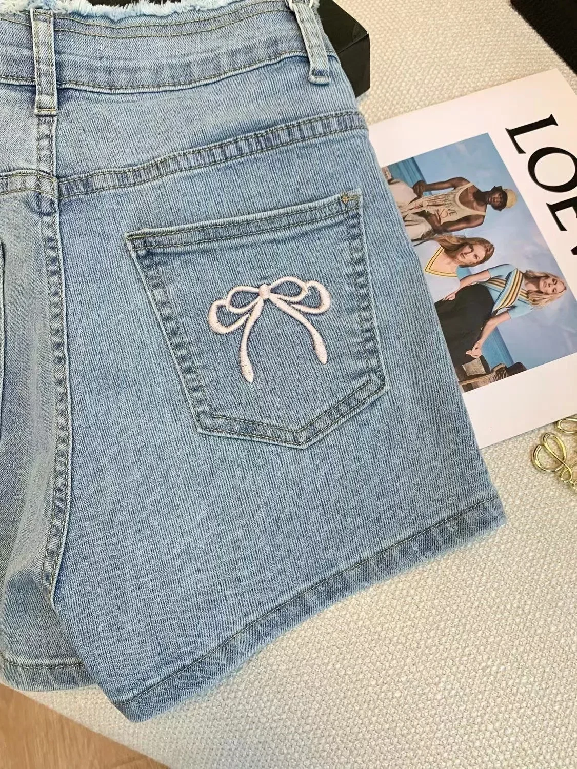 Korean High Waist Summer Butterfly Embroidery Craft Denim Shorts for women, Sweet Style Butt Lift, Elastic Slimming Hot Pants