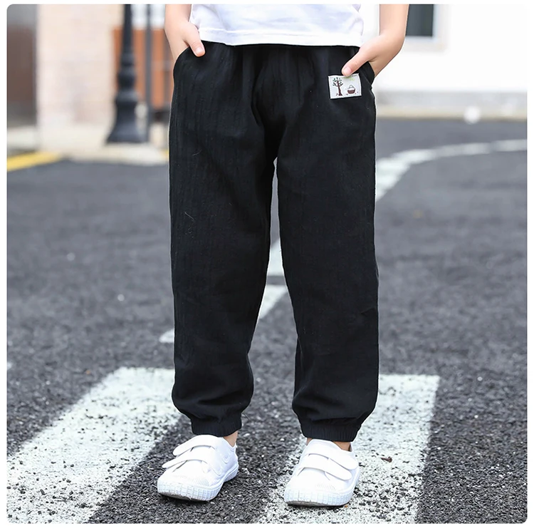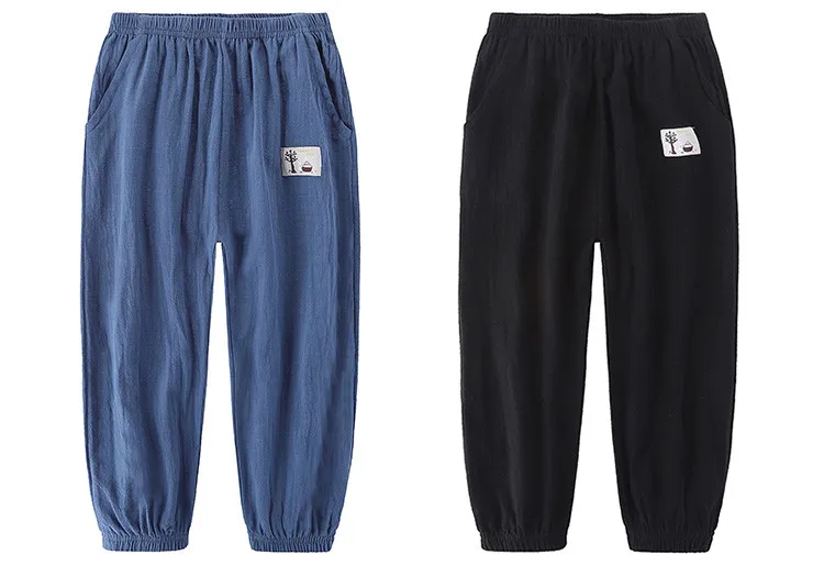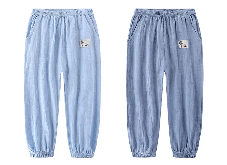 Solid Color Summer Mosquito Pants Children Trousers for Boys Girls Cotton Linen Elastic Waist Kids Clothing Long Pants 100-160cm