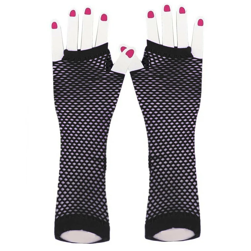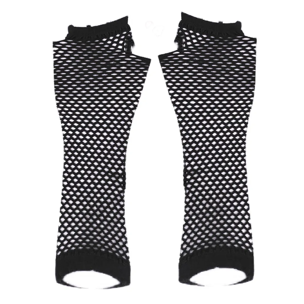 Women Gloves Hollow Out Holes Sexy Punk Goth Ladies Disco Dance Fingerless Mesh Fishnet Gloves Punk Rock Costume Mittens