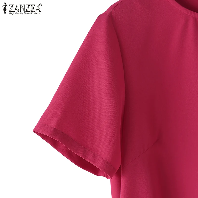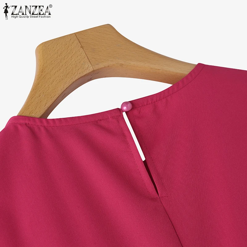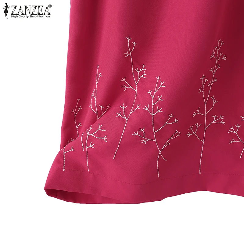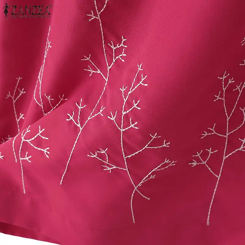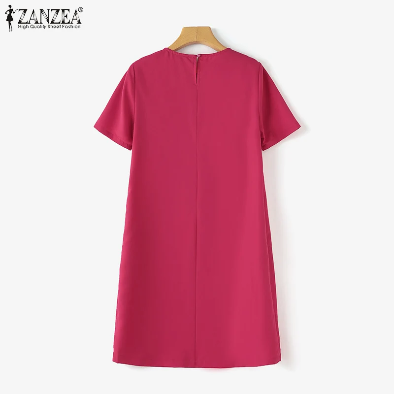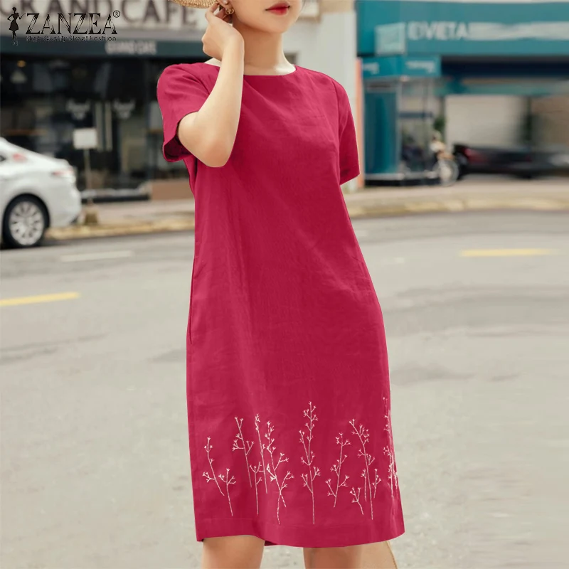 ZANZEA Summer Fashion Floral Embroidery Dress Women O Neck Short Sleeve Sundress Robe Femme Elegant Work Knee Length Vestidos