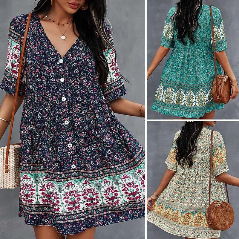 Model Number: Women Bohemian Printed Sundress;Femme Robe