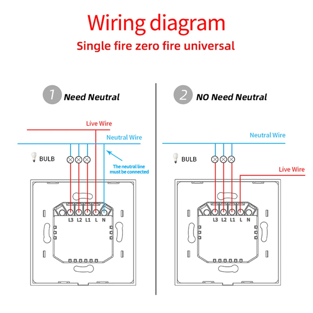 ZigBeeTuya Smart Light Touch Switch EU No Neutral Wire No Capacitor Required Smart Life 1/2/3 Gang Work with Alexa Google Home