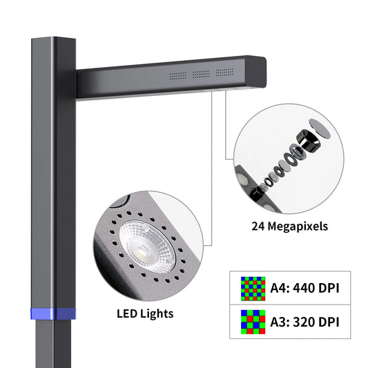 CZUR Shine Ultra Pro Book Scanner, 24MP Document Scanner, Portable USB Document Camera, Scan Max A3 Format w/ Adjustable Height