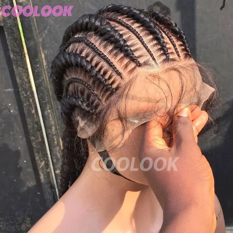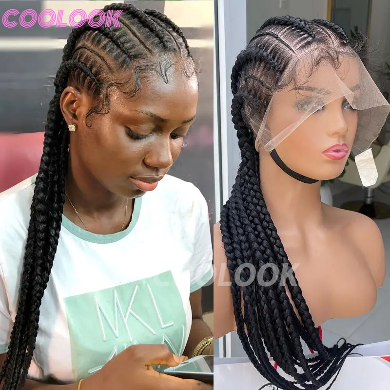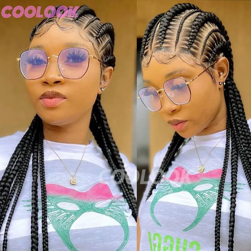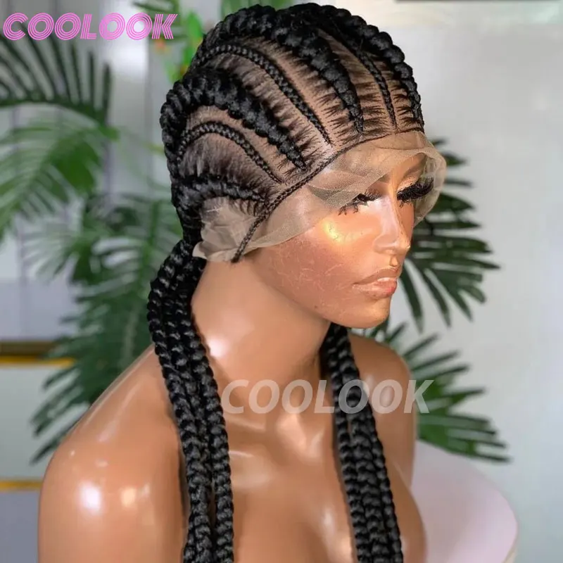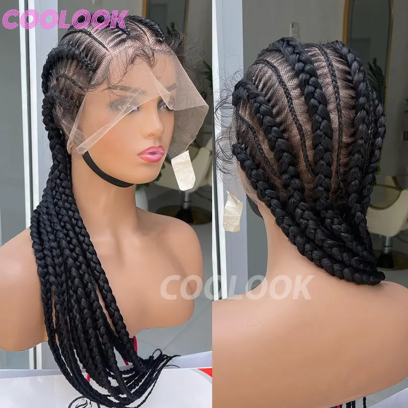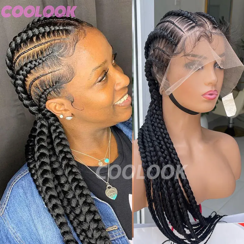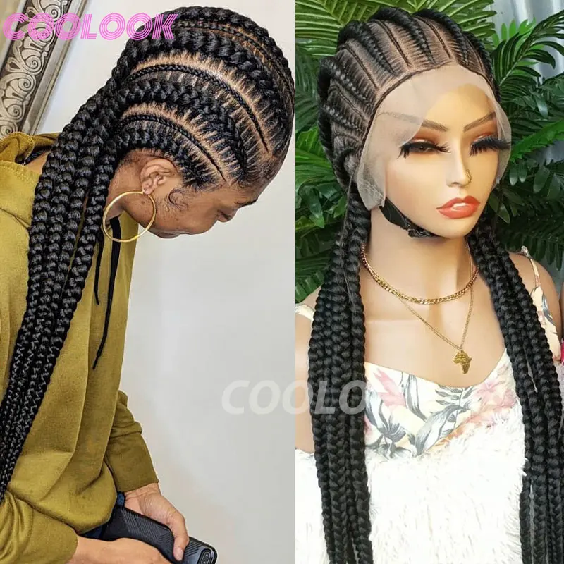 36" Synthetic Lace Front Wigs Jumbo Braided Wigs Full Lace Front Dutch Twins Cornrows Braids Wig For Black Women Crochet Hair
