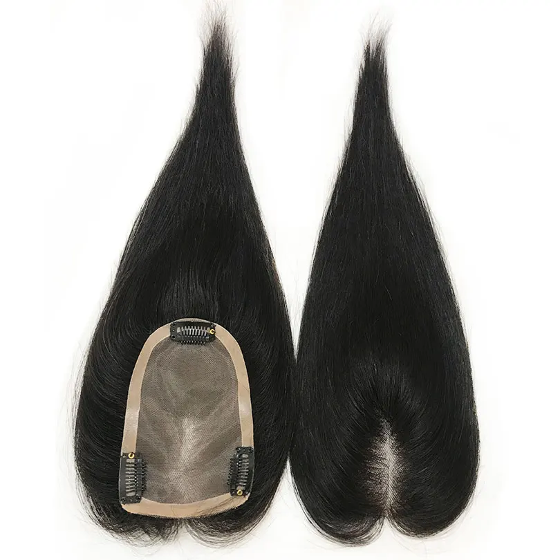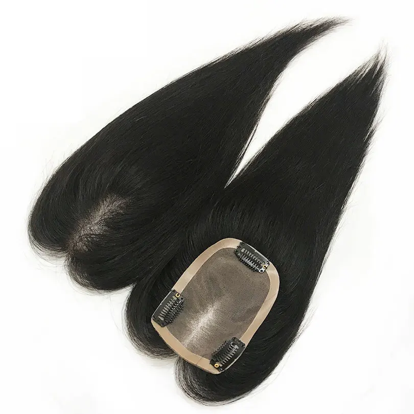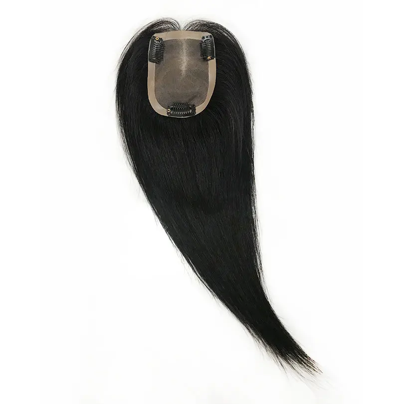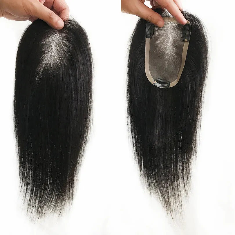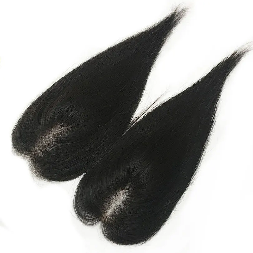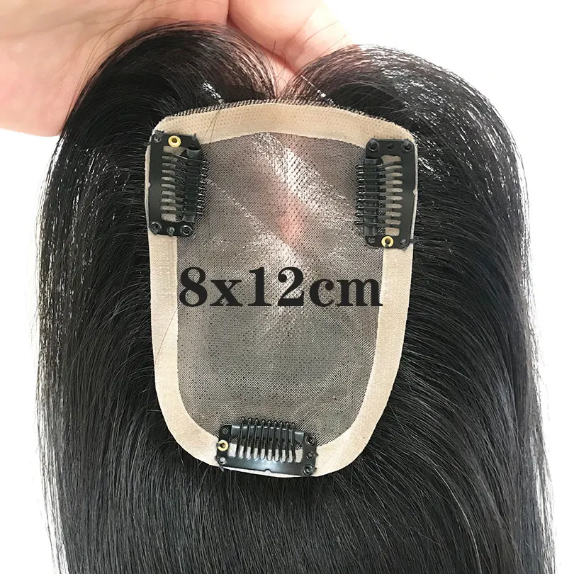 9X14CM Virgin Human Hair Toupee For Women #3 Net Straight Toppers 8x12cm Natural Black Color 8-12inch