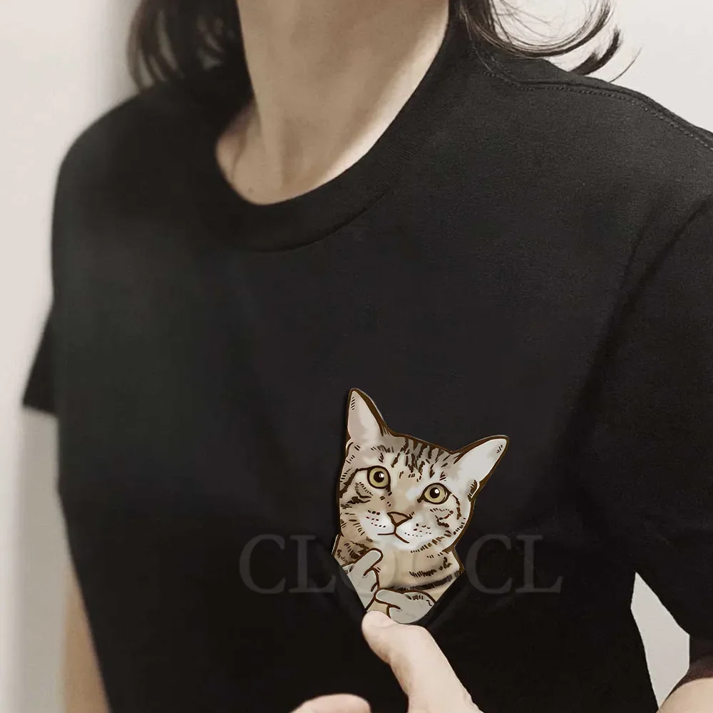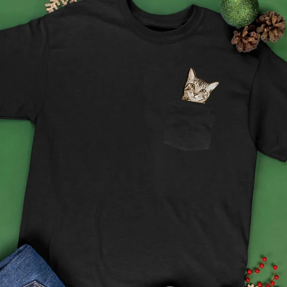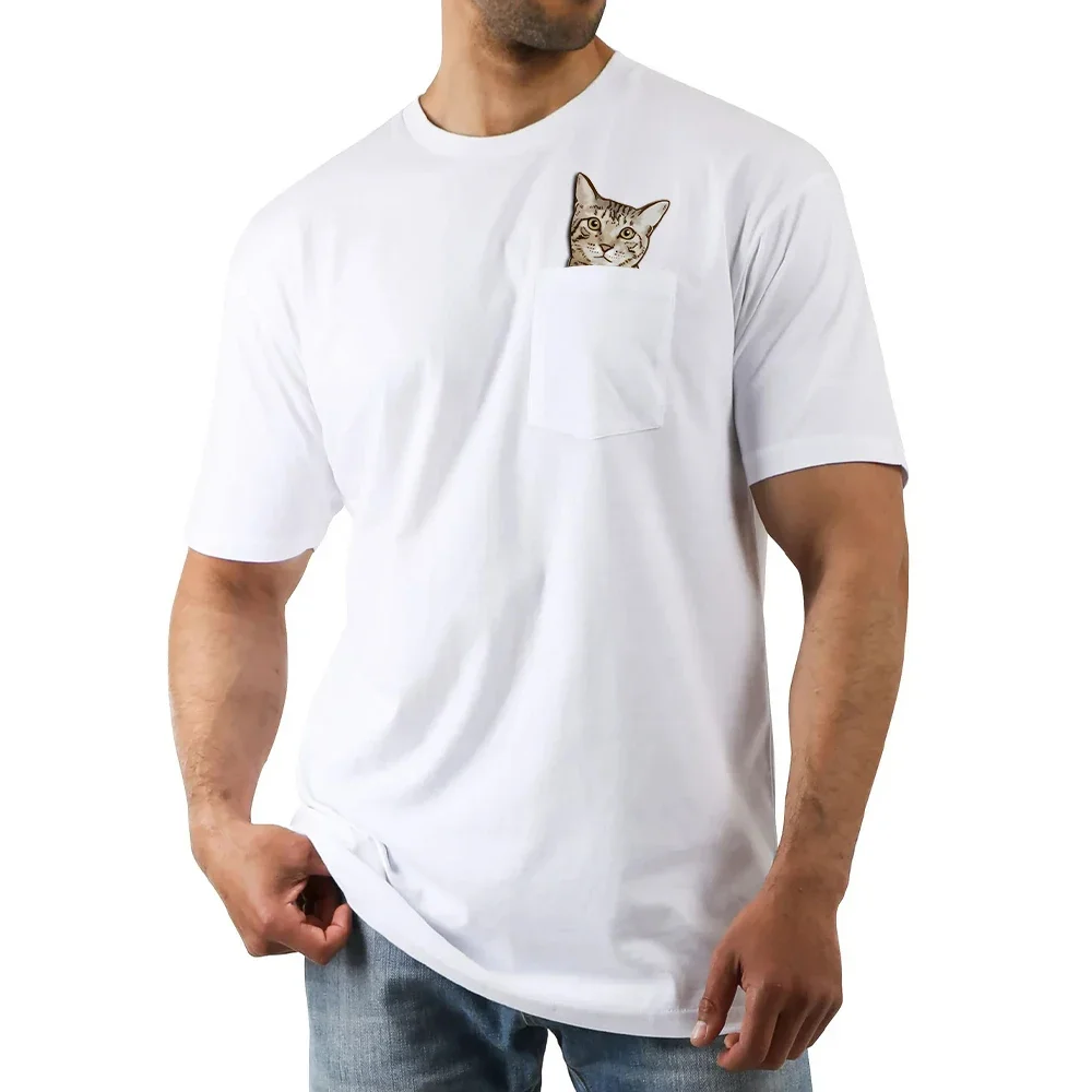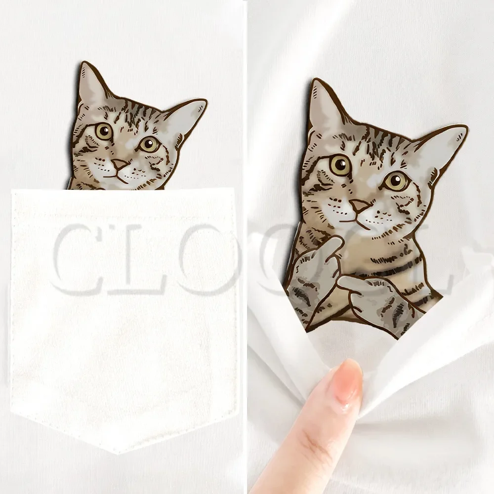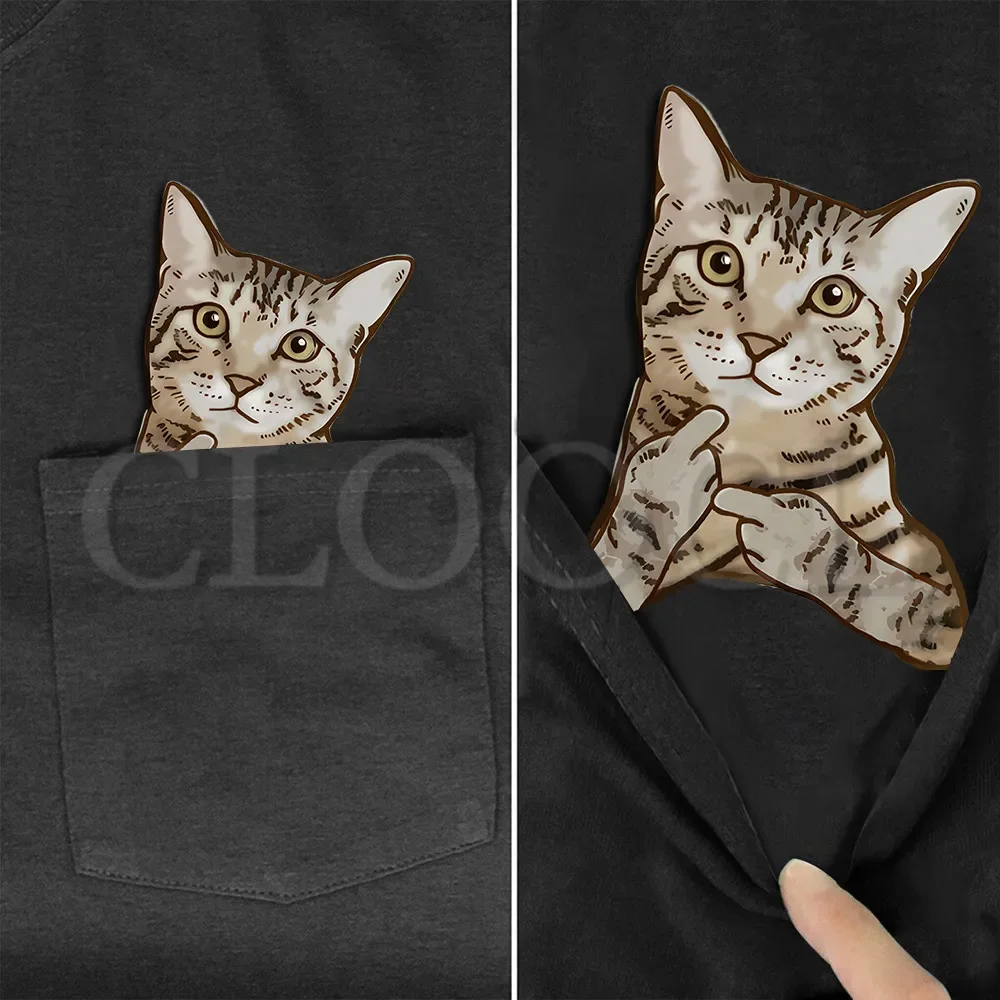 CLOOCL Animals Cat Pocket T-Shirts Tabby Middle Finger Printed T-shirt Men for Women Summer Short Sleeve Shirts Cotton Tees Tops