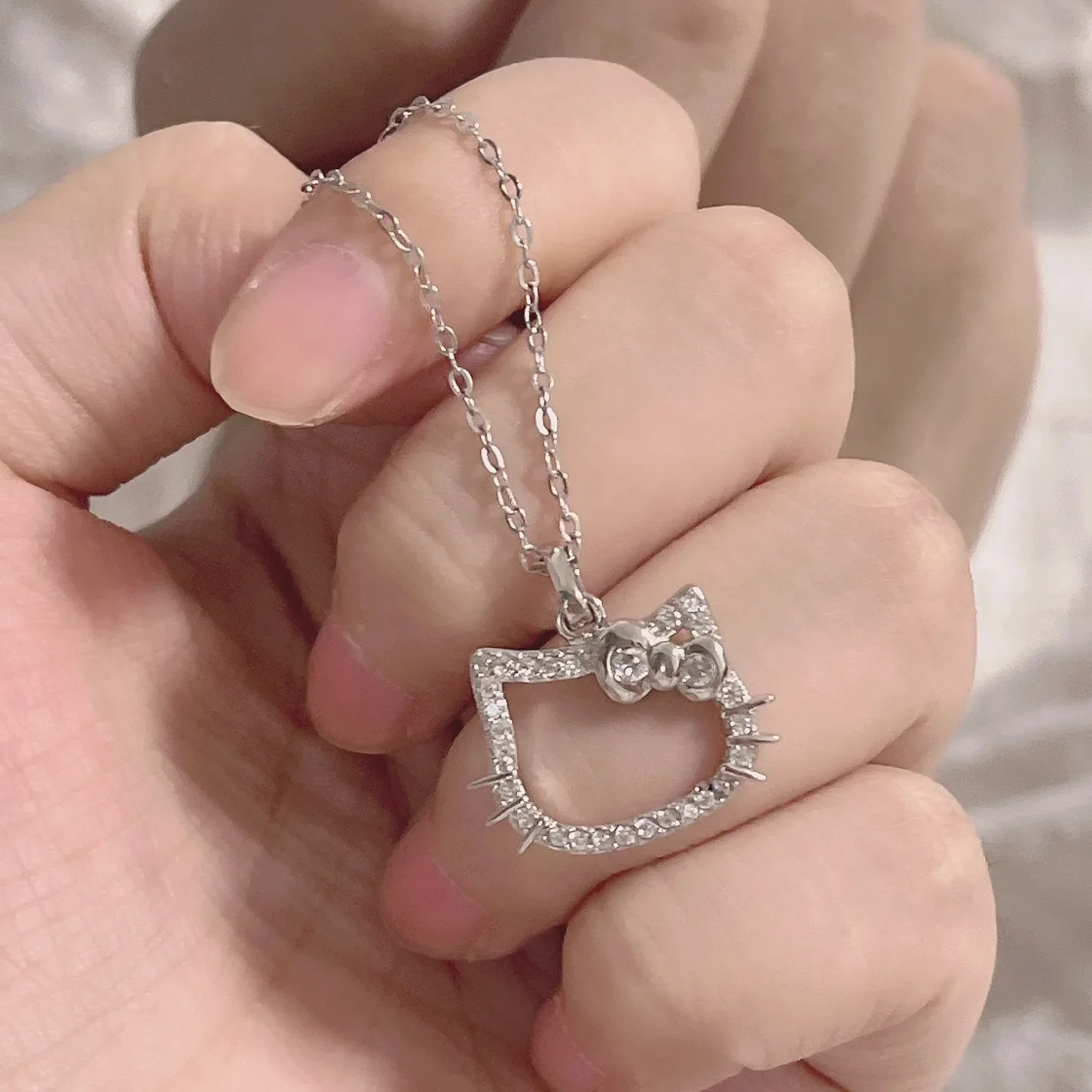 Cute Cartoon HelloKittys Necklace Sanrio Anime Double Ring Collarbone Chain Girl Fashion Pendant Women Jewelry Birthday Gift