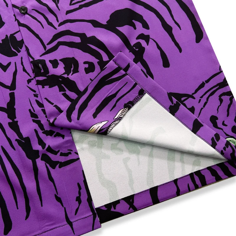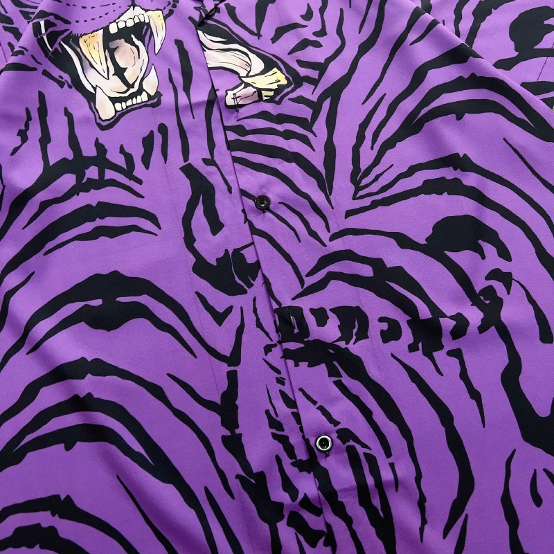 Dark Icon Purple Tiger Hawaiian Shirts Men Summer Button Down Collar Men's Shirts Male Top